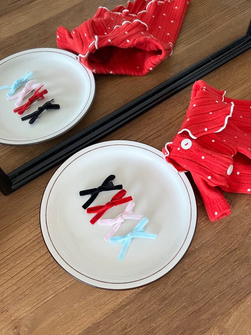 予約【korea select】velvet ribbon hair pin( 4color )
