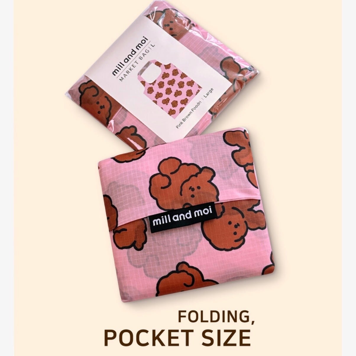 予約【 mill and moi 】pink brown food ream market bag ( Lsize )