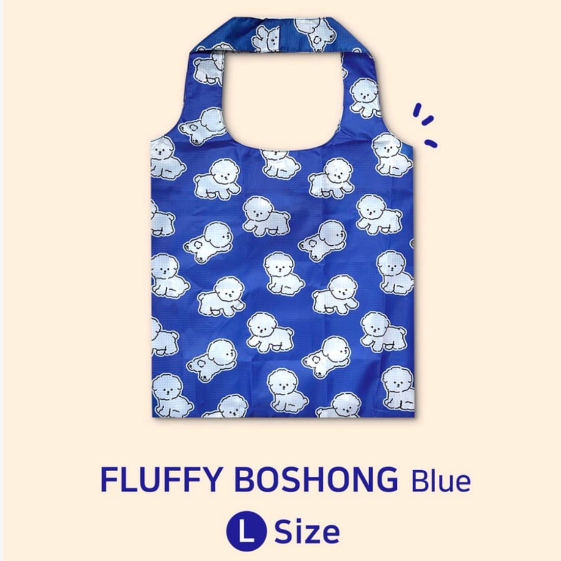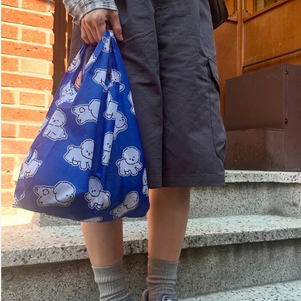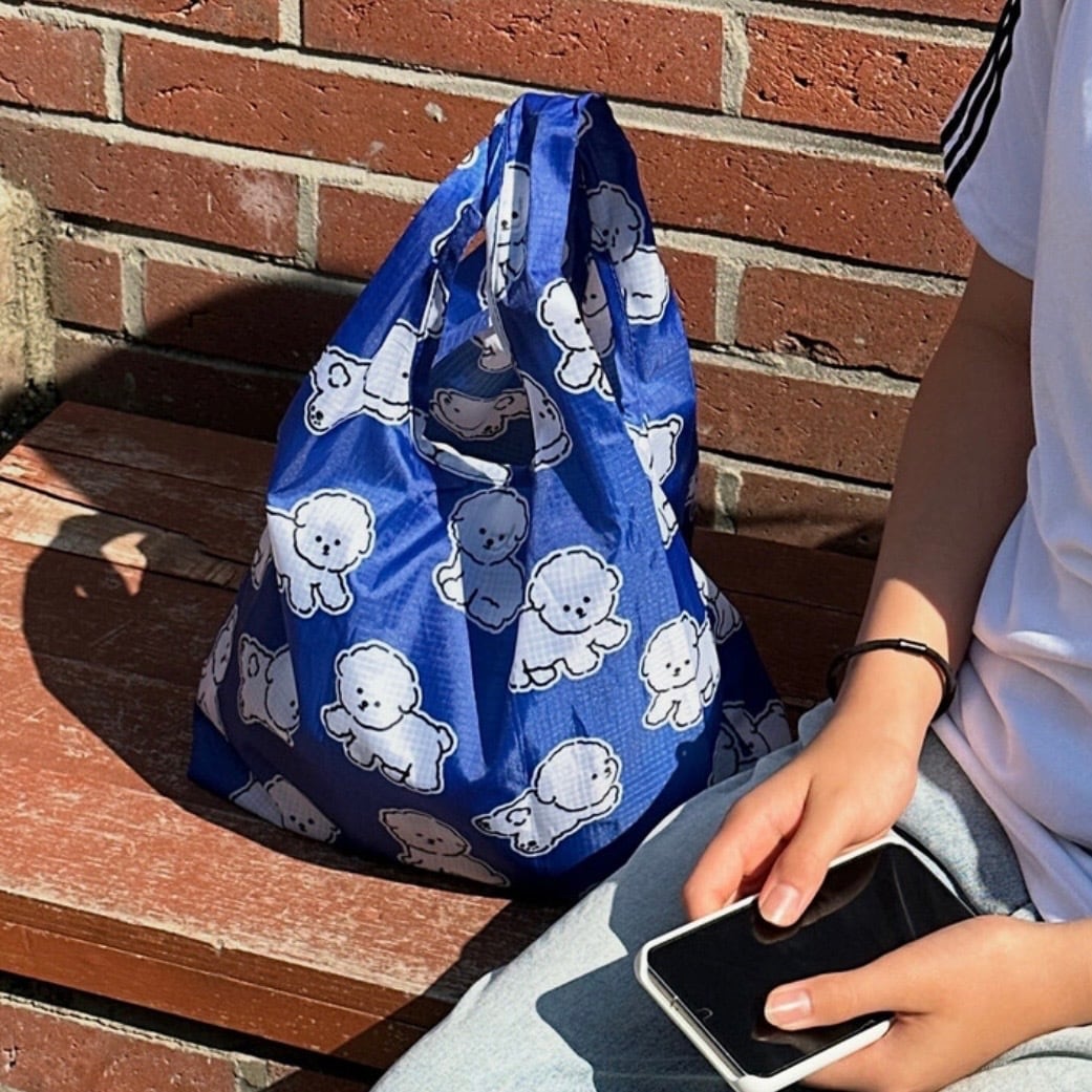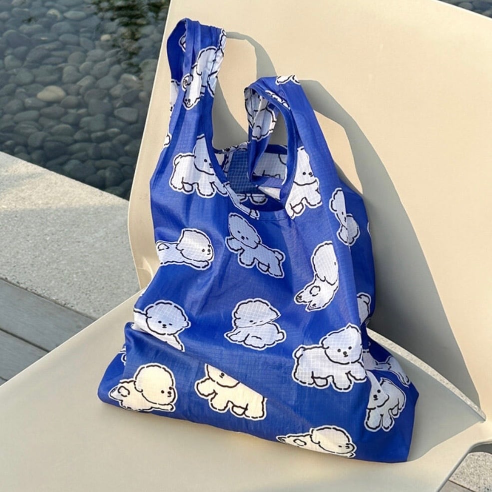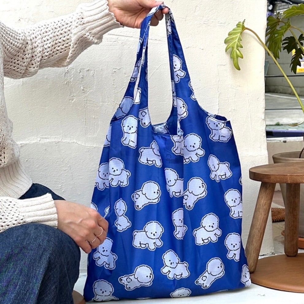 コバルトブルーに白いボションのキャラクターパターンで、爽やかで涼しげな印象のショッピングバッグ!