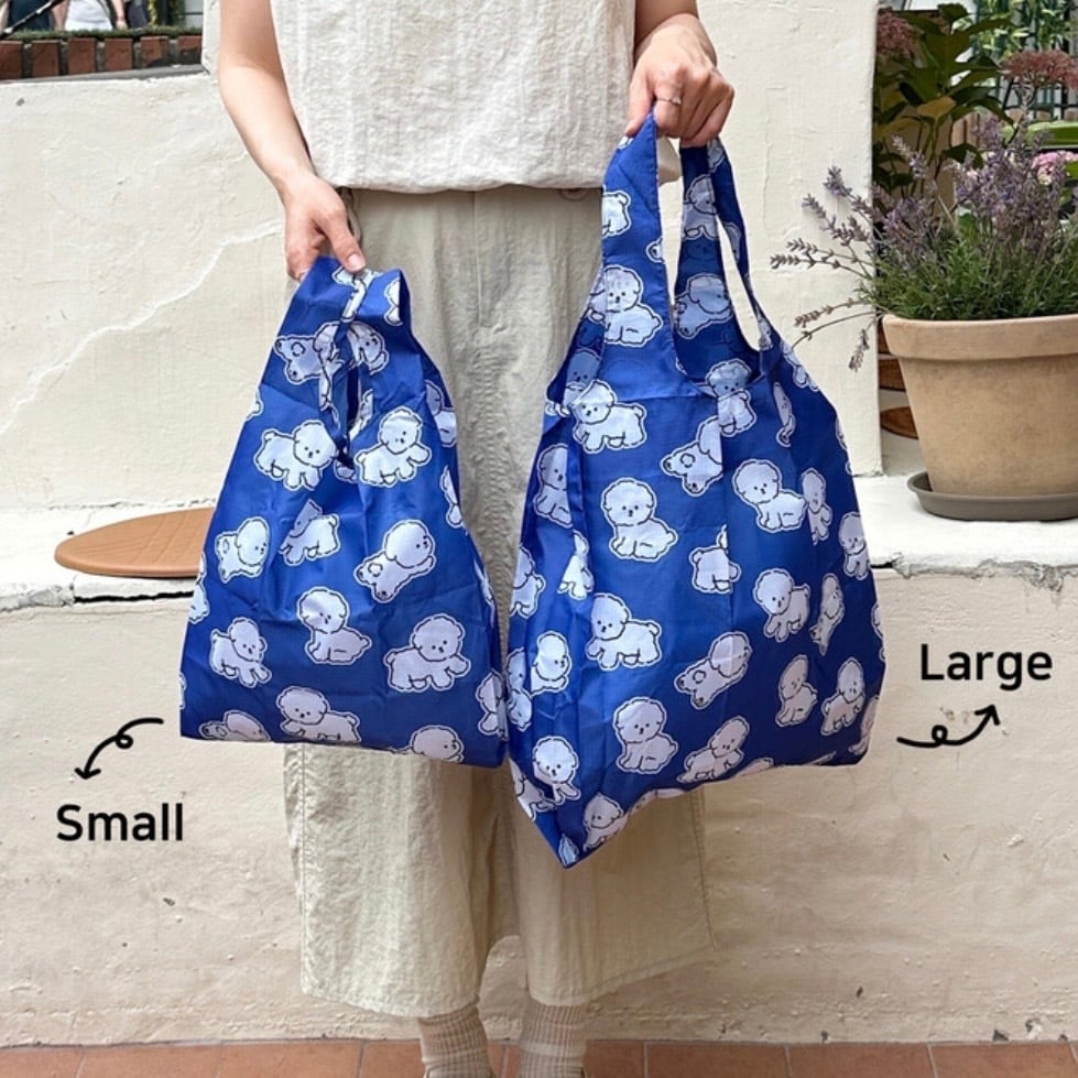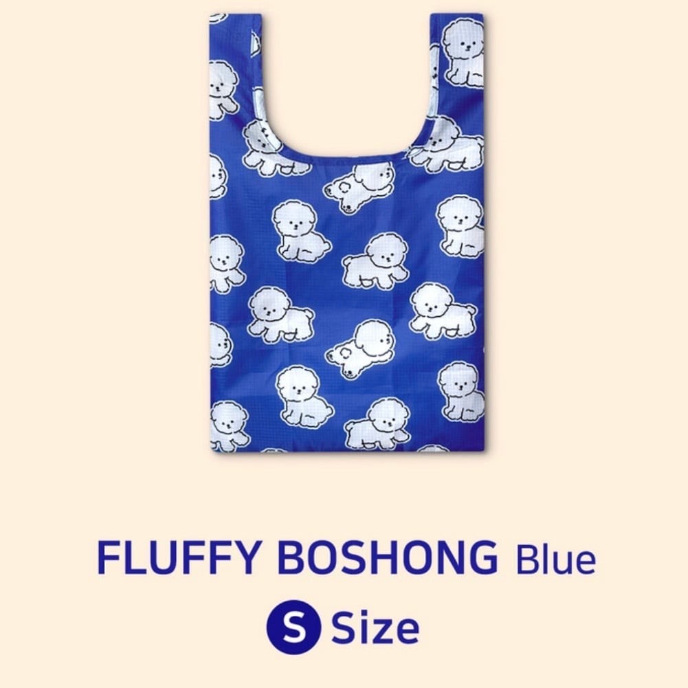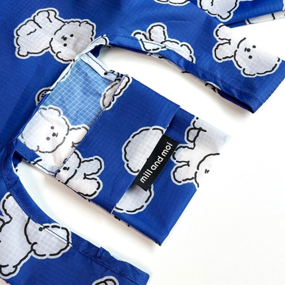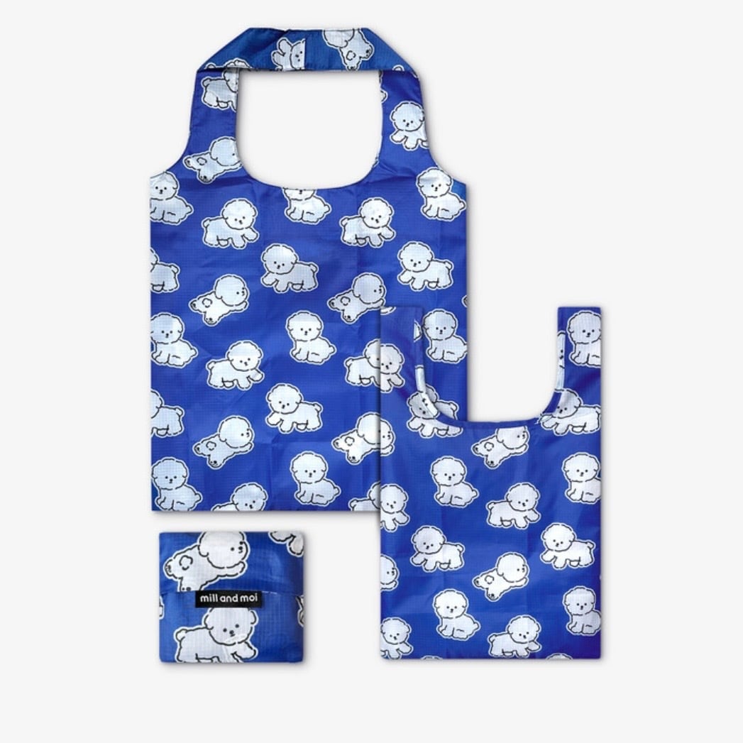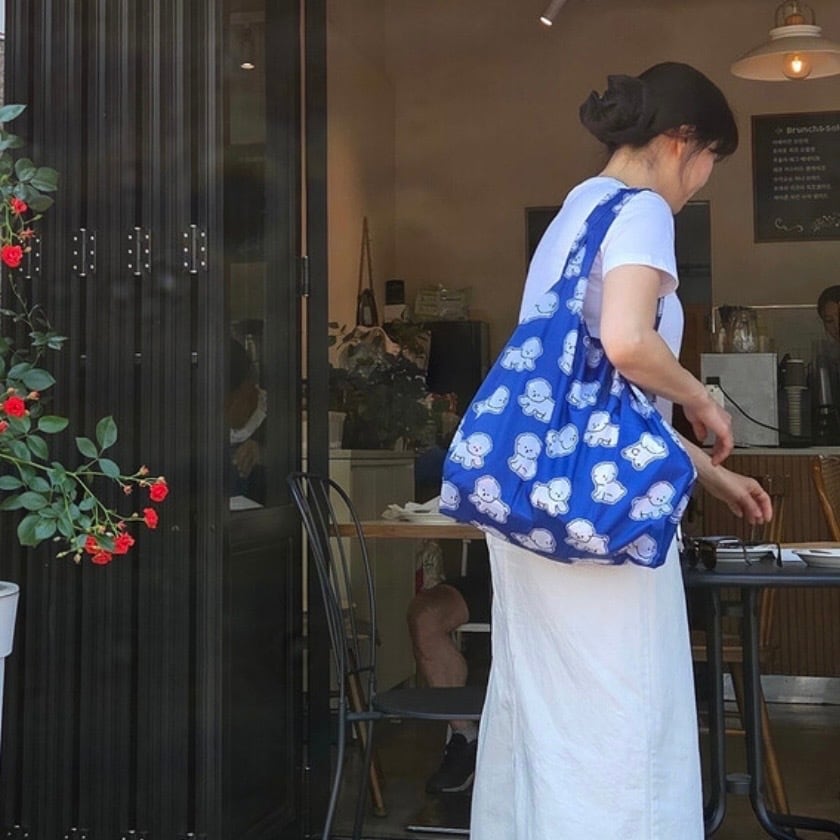 コバルトブルーに白いボションのキャラクターパターンで、爽やかで涼しげな印象のショッピングバッグ!
