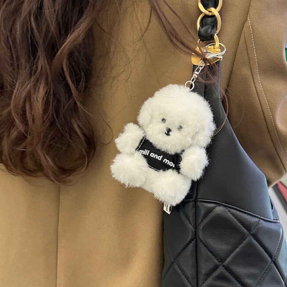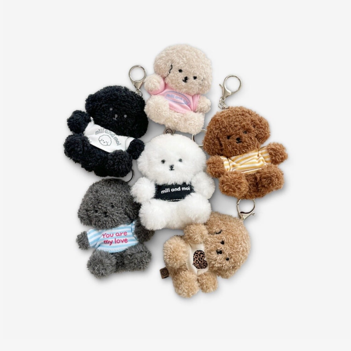ミル&モイで最も愛されている犬キャラクターが、ぬいぐるみキーホルダーとして制作されました。