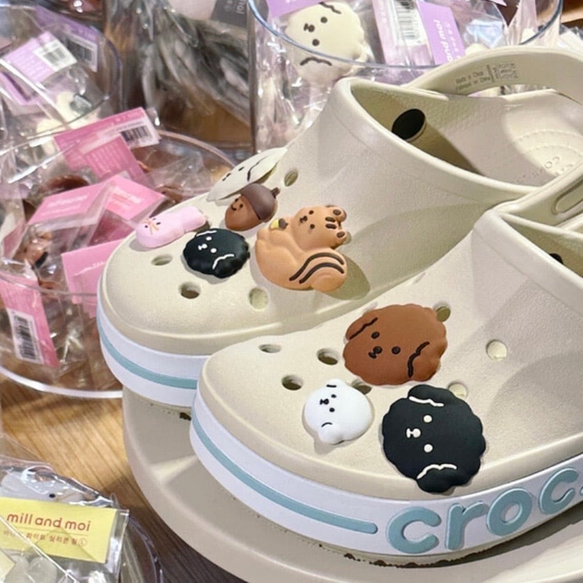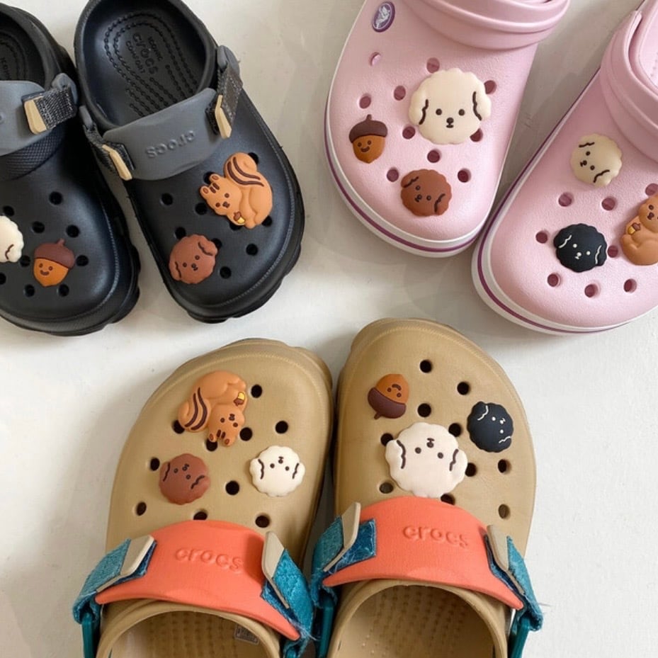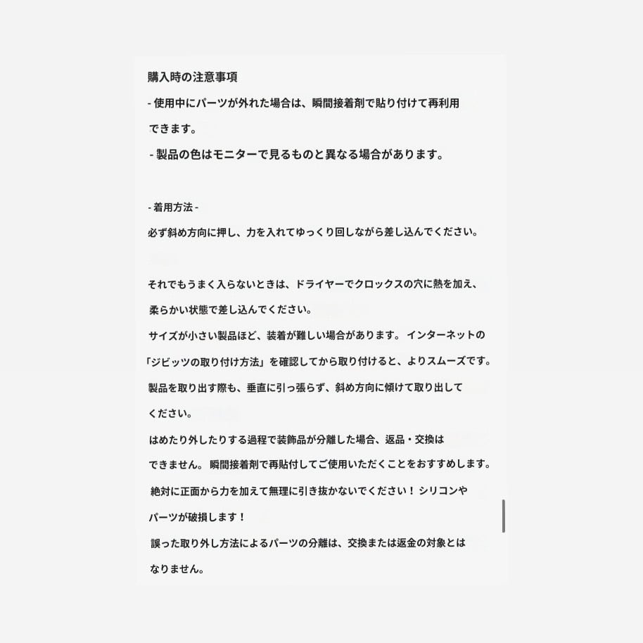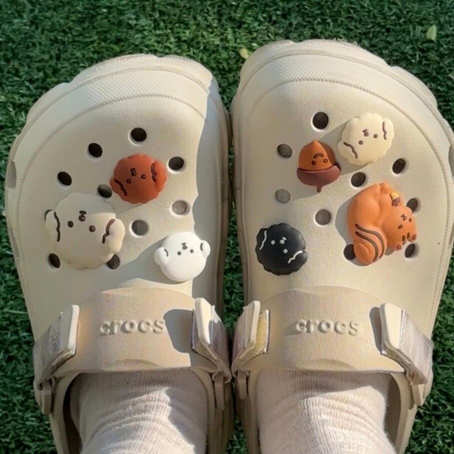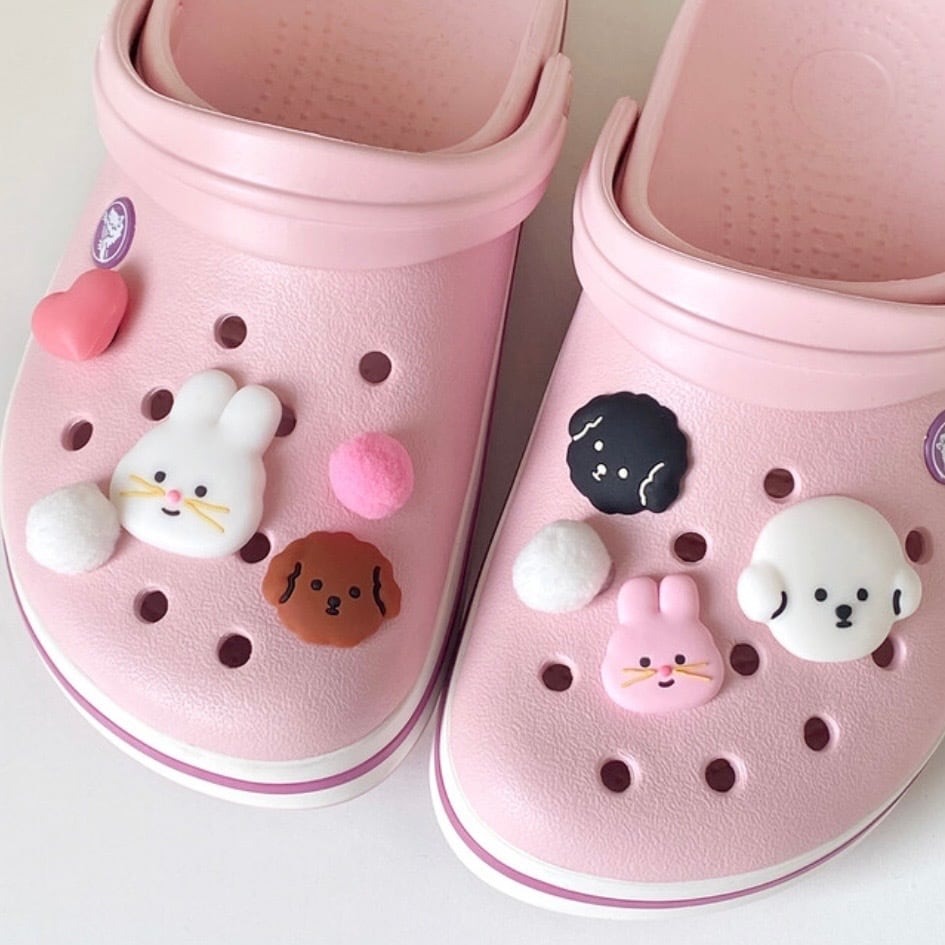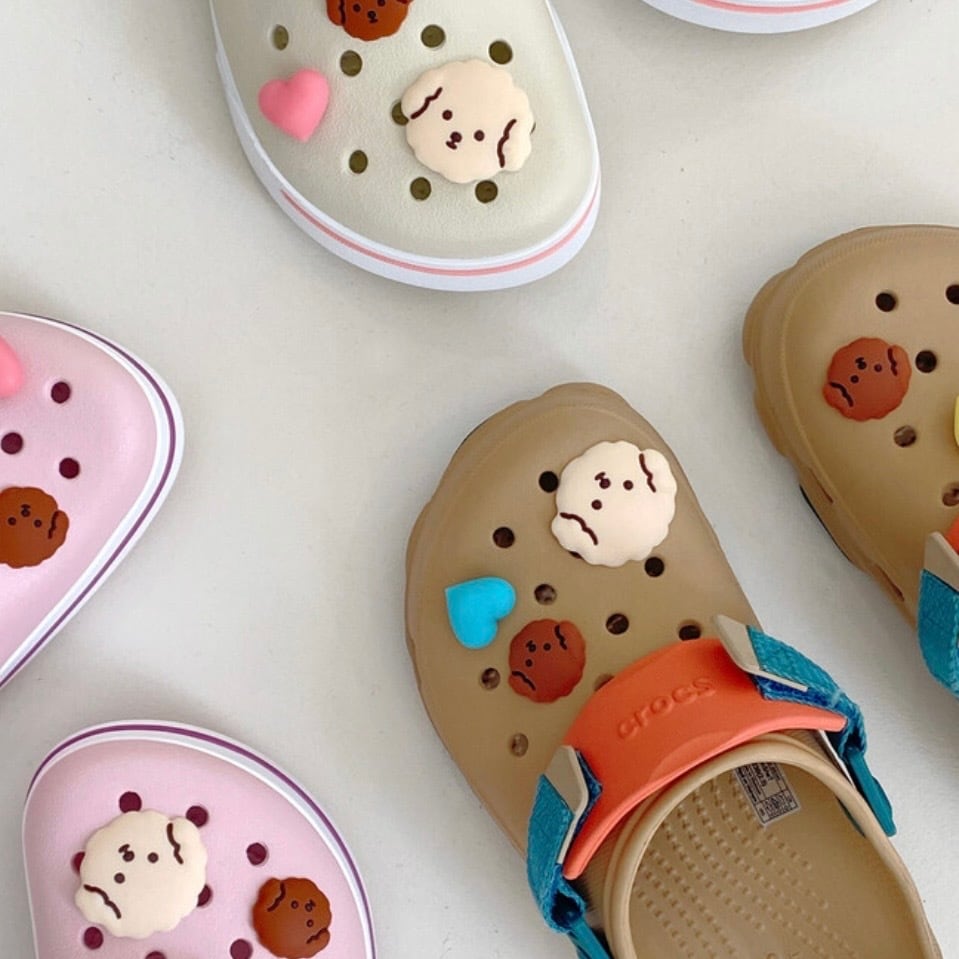 穴がたくさん開いたクロックスに装着すれば、無骨な靴さえも可愛らしく変身させてくれる魔法のアイテムです。