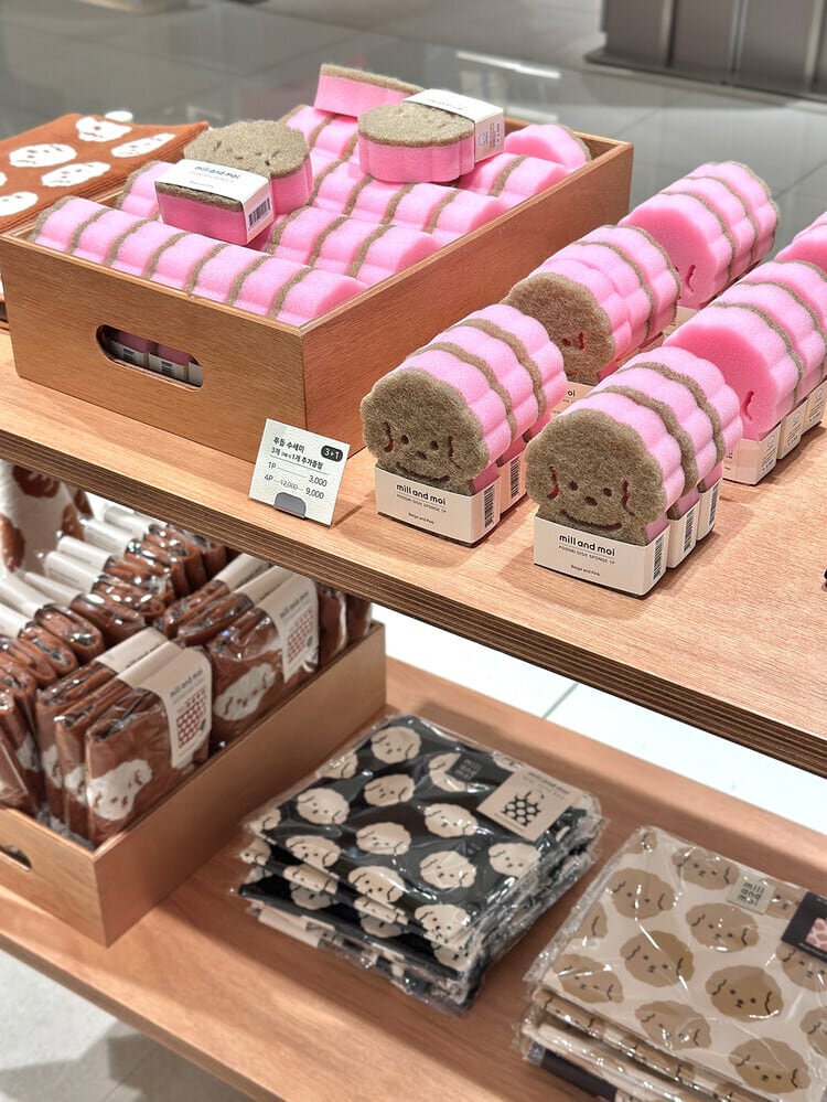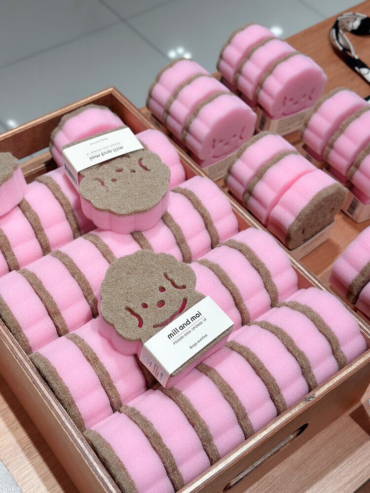 通りすがりの方々も一度は足を止めたくなるミル&モイのフードリ両面スポンジです。