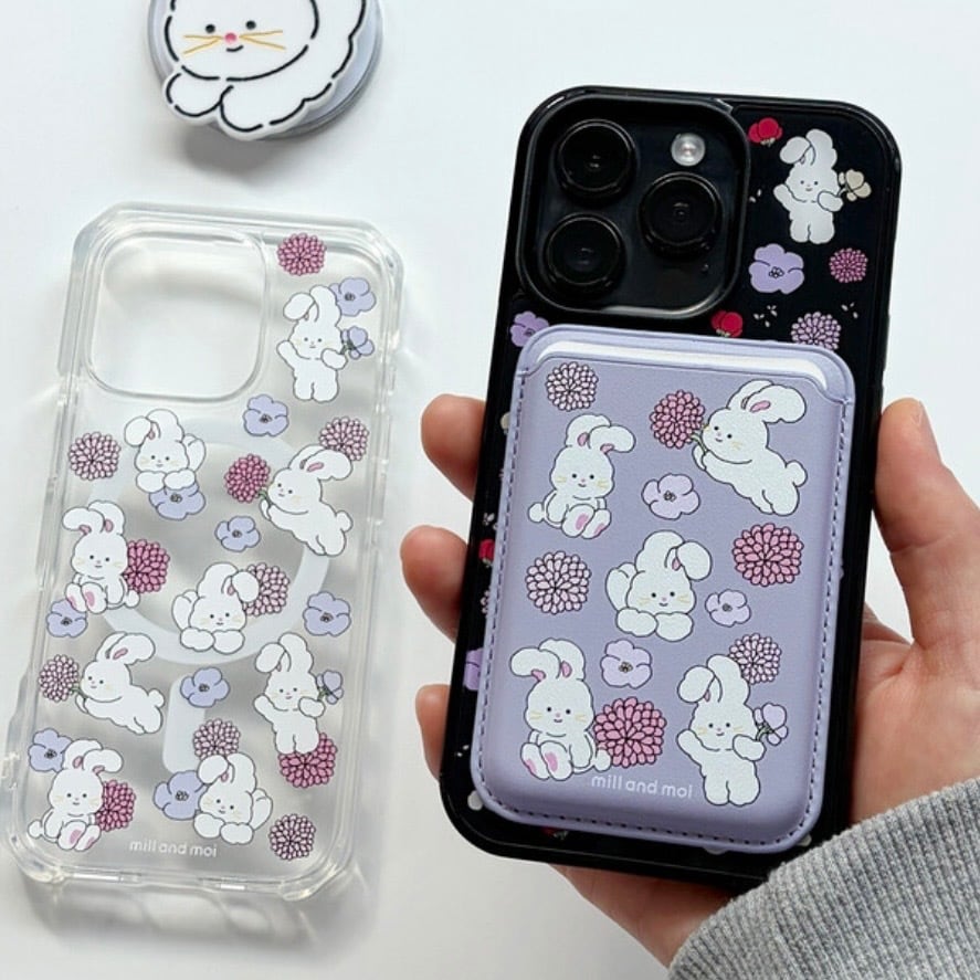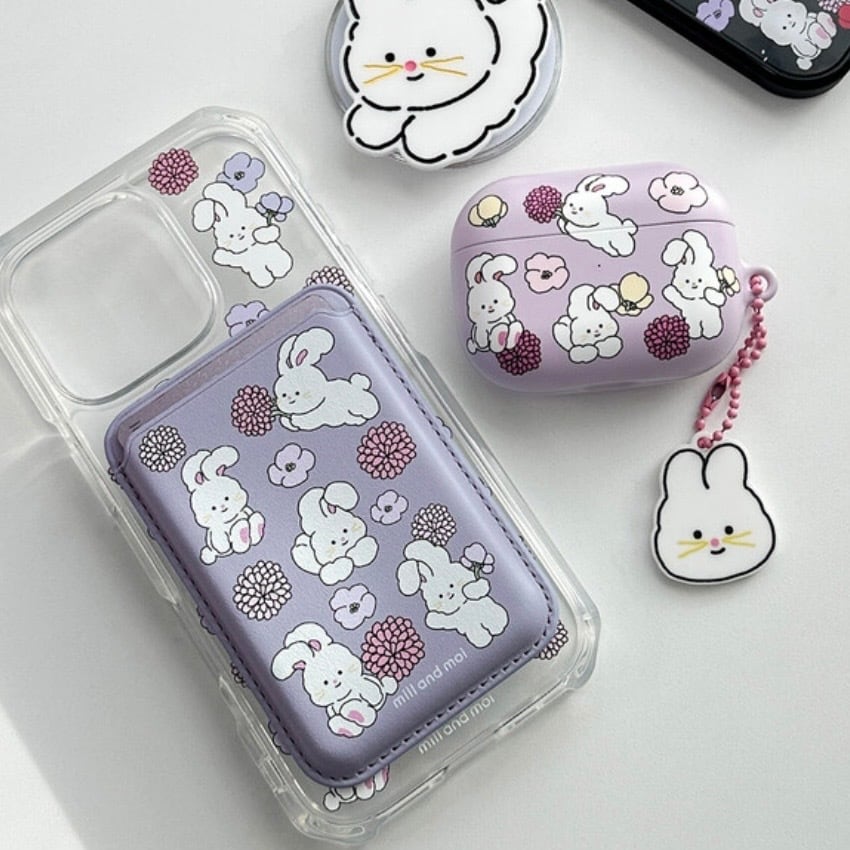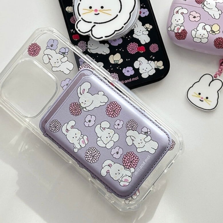 予約【 mill and moi 】floral bannipping purple card wallet [MagSafe対応]