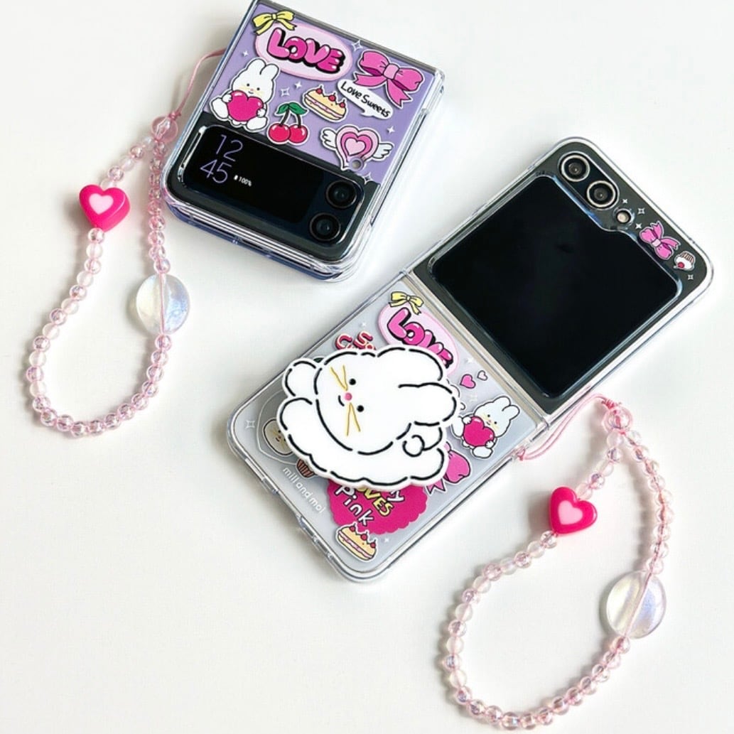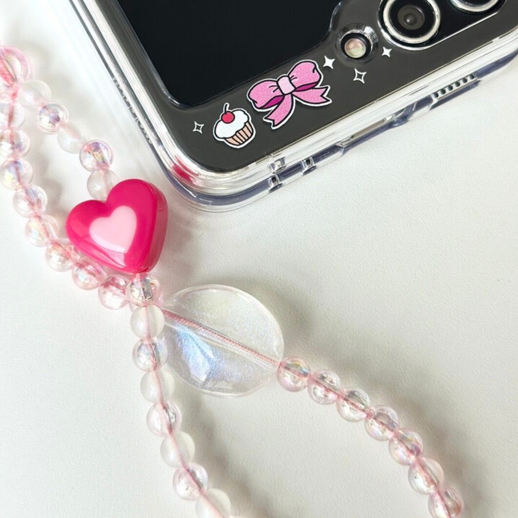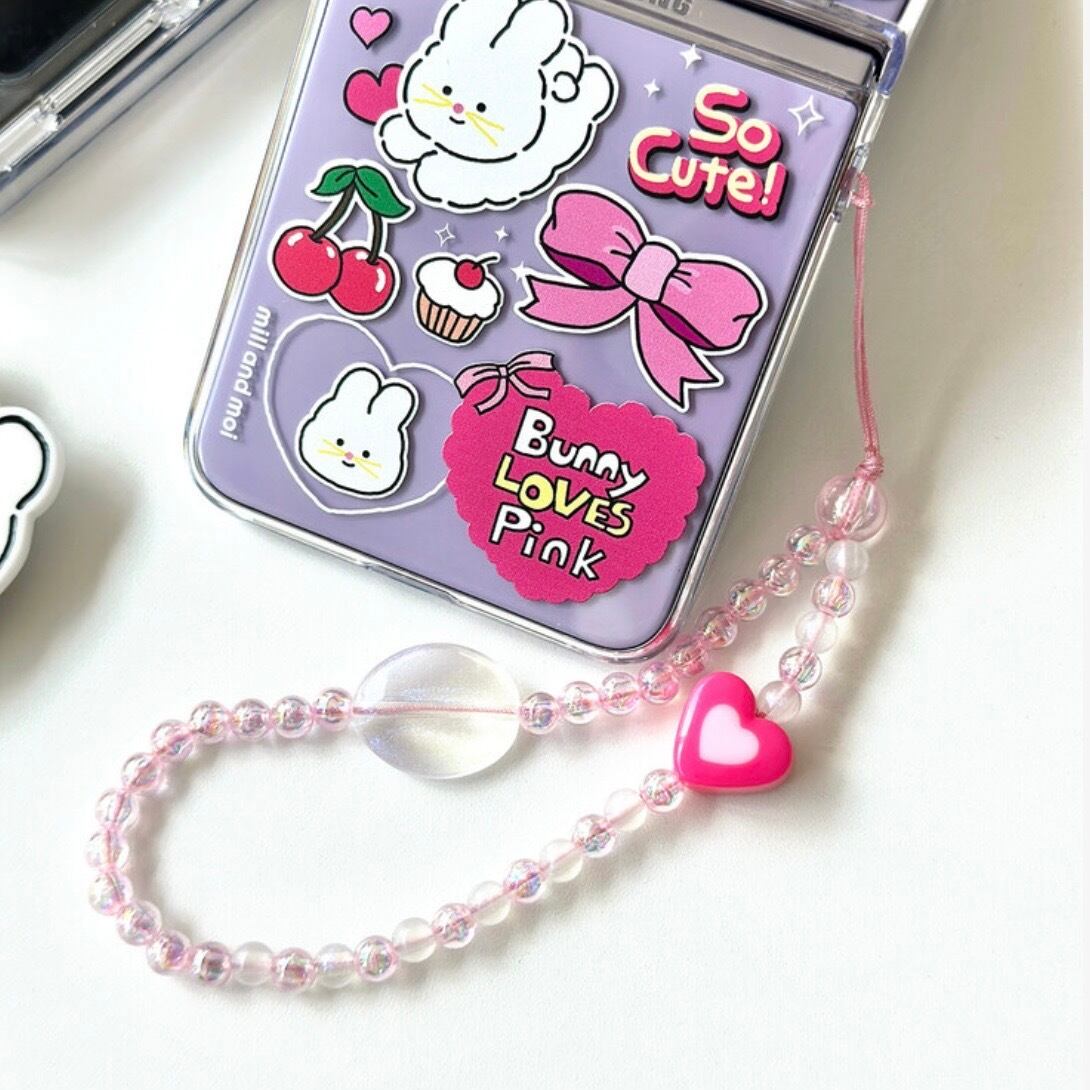 ピンクオーロラ透明ビーズストラップは、バニピングシリーズとセットでおすすめです。