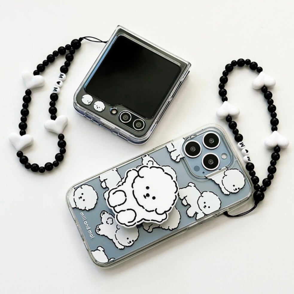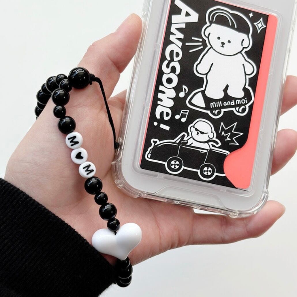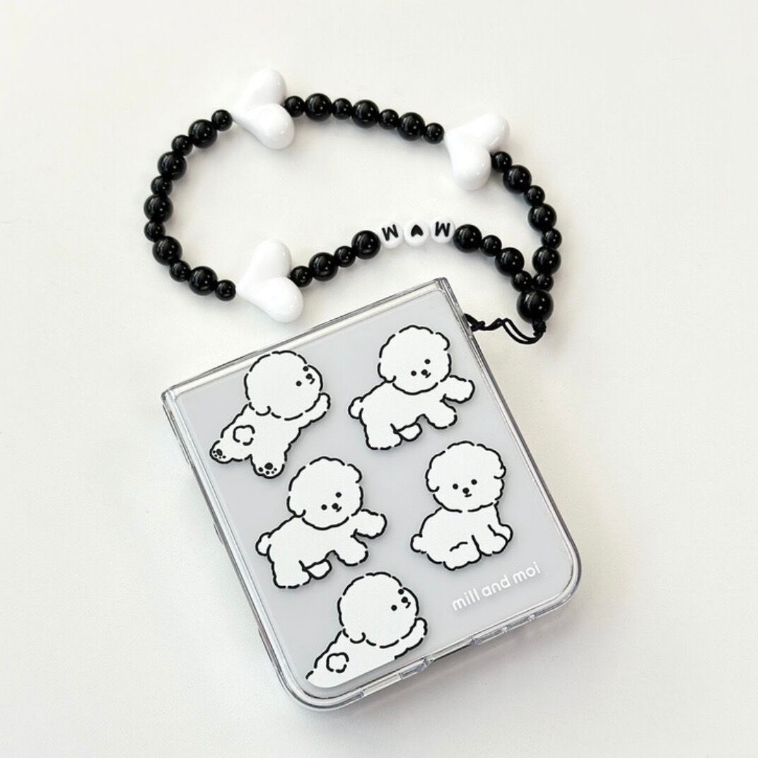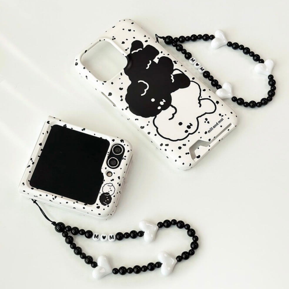 ミル&モイのヒップスターボションやクーアンドクフードリケースなど、ブラック&ホワイトのムードのケースとセットで着用することをおすすめします。