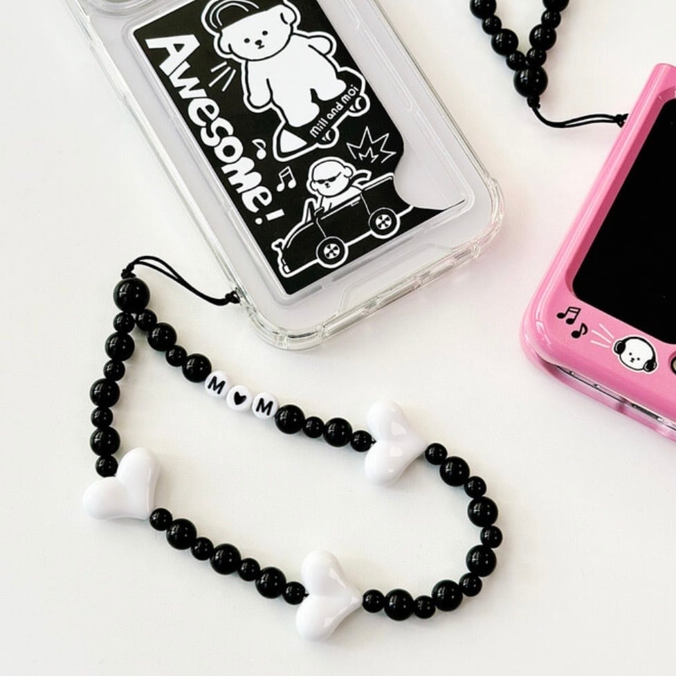 ミル&モイのイニシャルMとMを入れた自社製作のビーズストラップです。