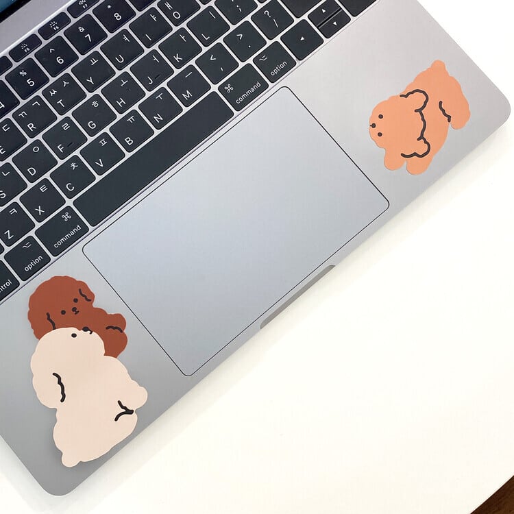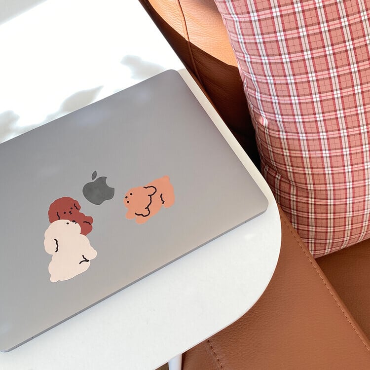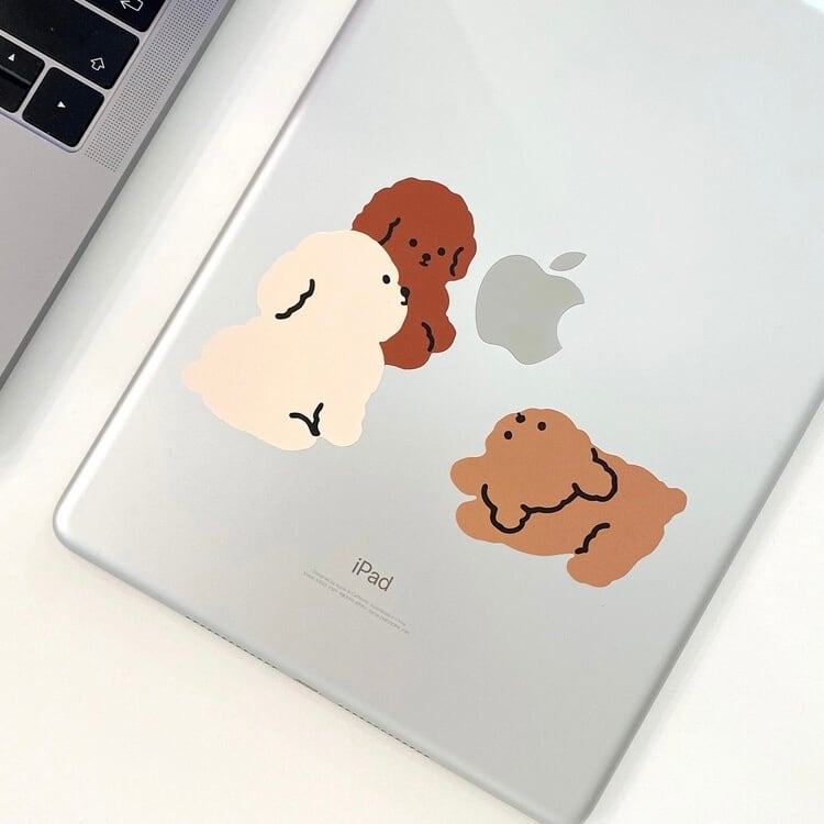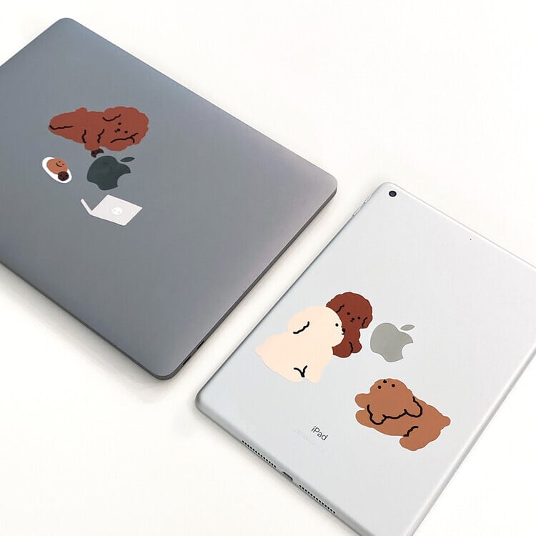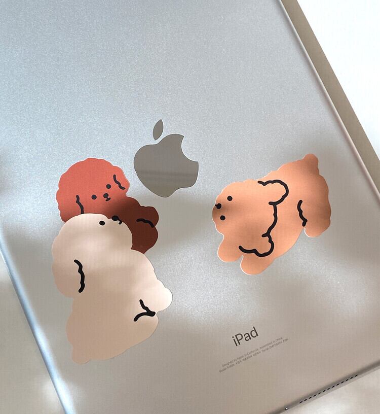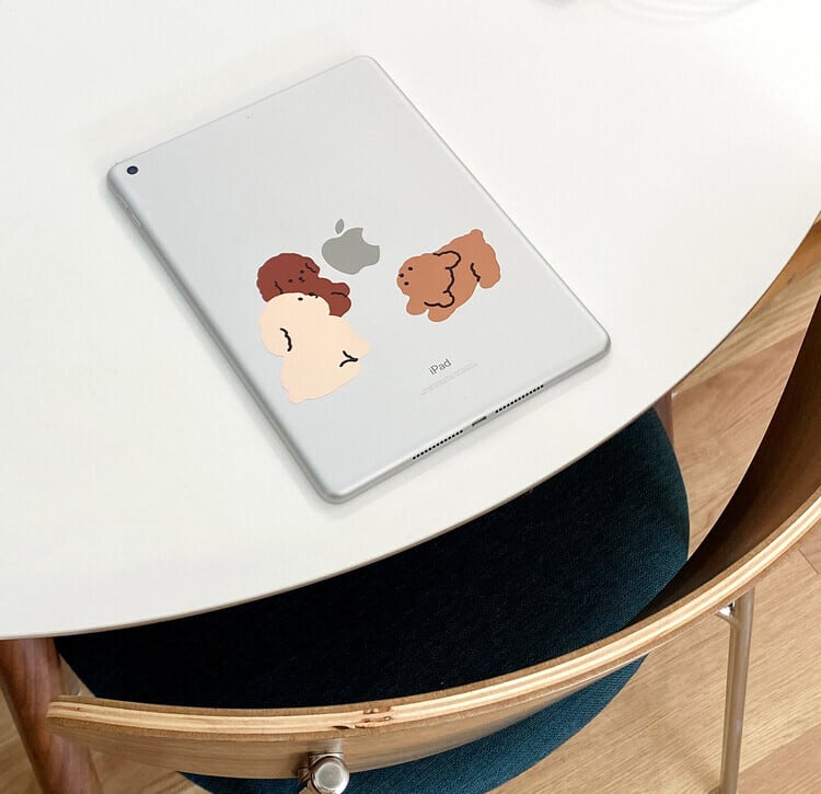 ぎっしりと集まった3匹のフードリを、iPadやノートパソコンのロゴの周りに貼ってみてください!