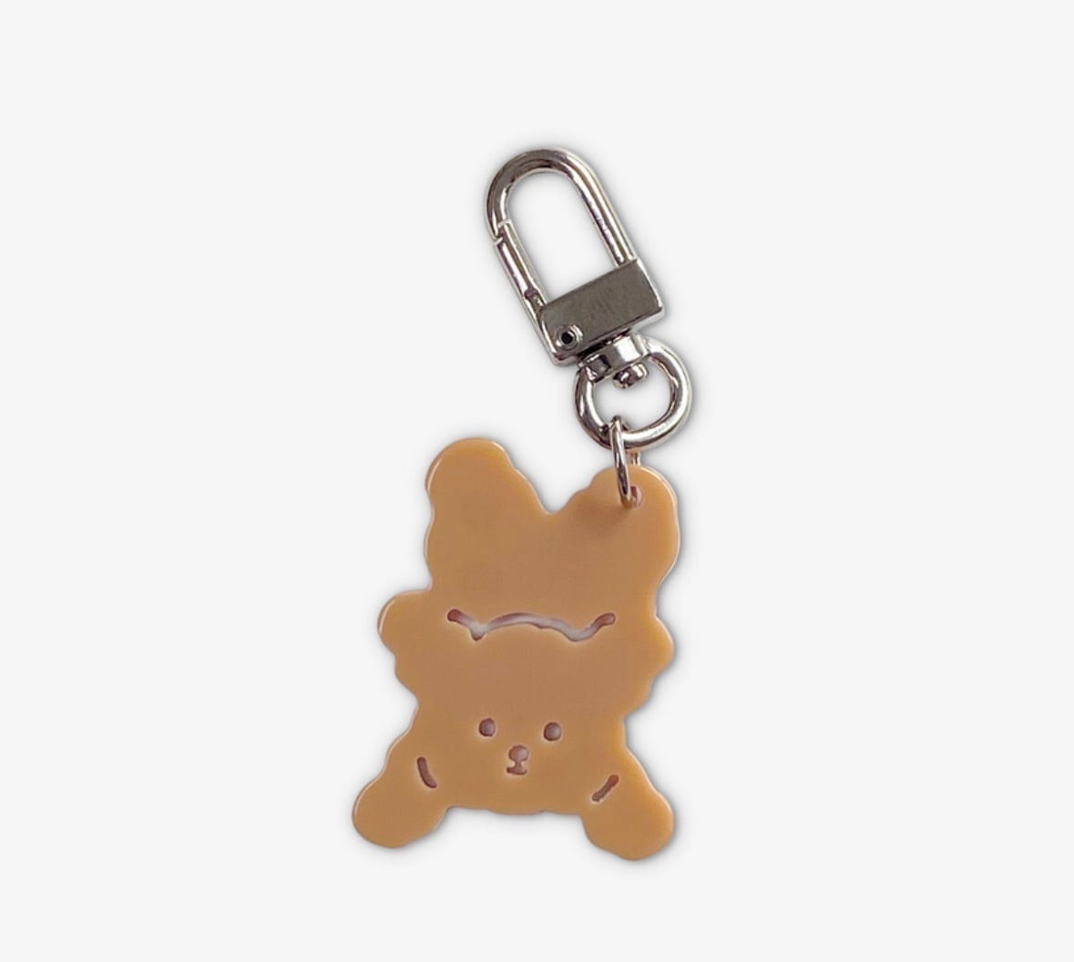 まるで片方の足でキーホルダーにぶら下がっているかのような可愛いポーズのベージュプードルキーホルダーです。