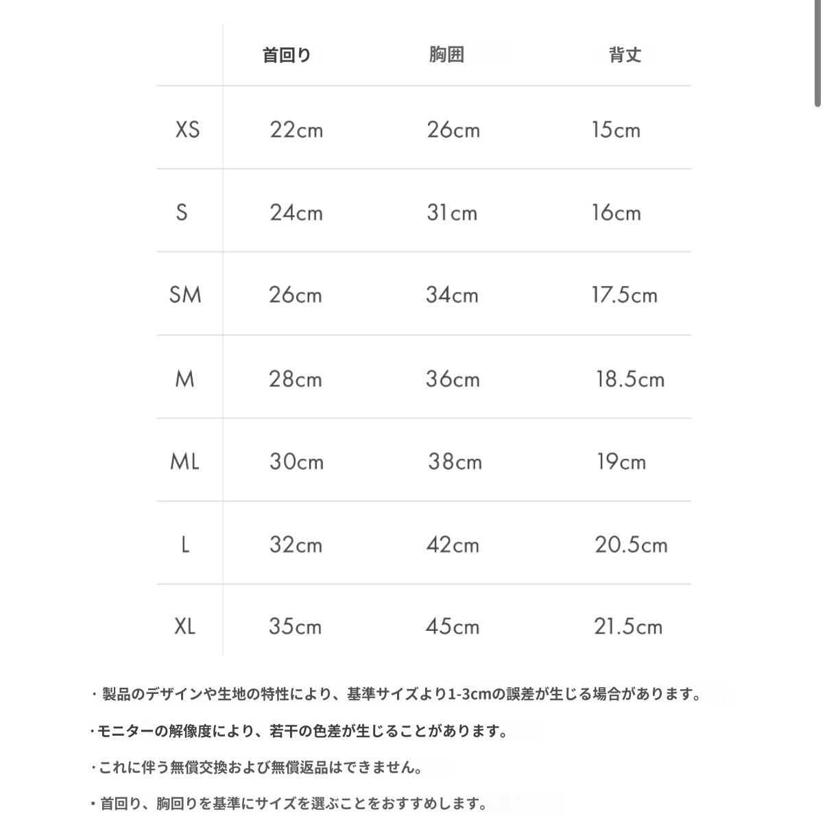 モデルの友人は2.6kg 胸囲 31cm 背囲 26〜27cm