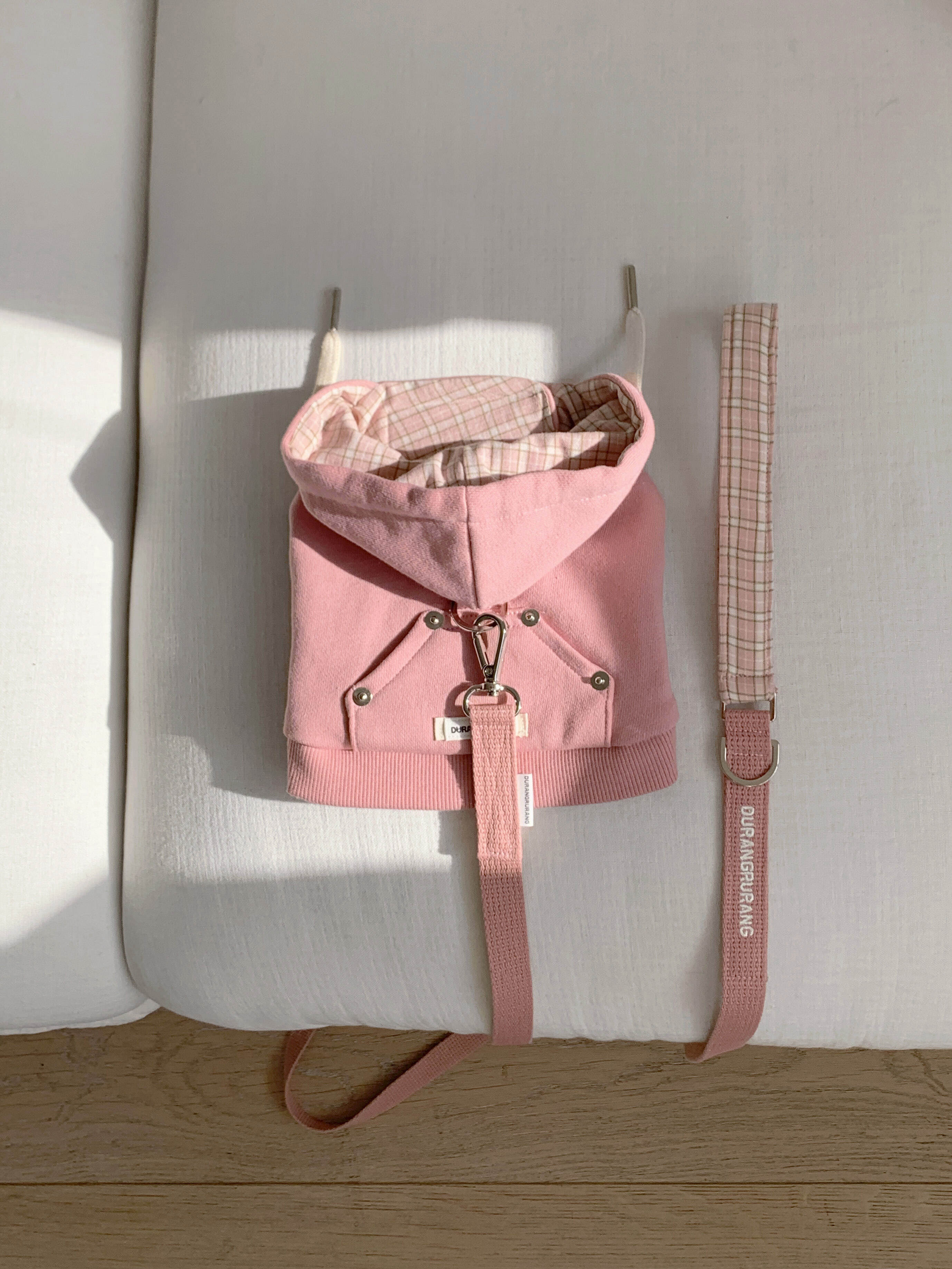 ハーネスをかけたフーディのように!服としても軽く着用しやすいです。 柔らかく、接着力が最も優れた国産高級ベルクロを使用し