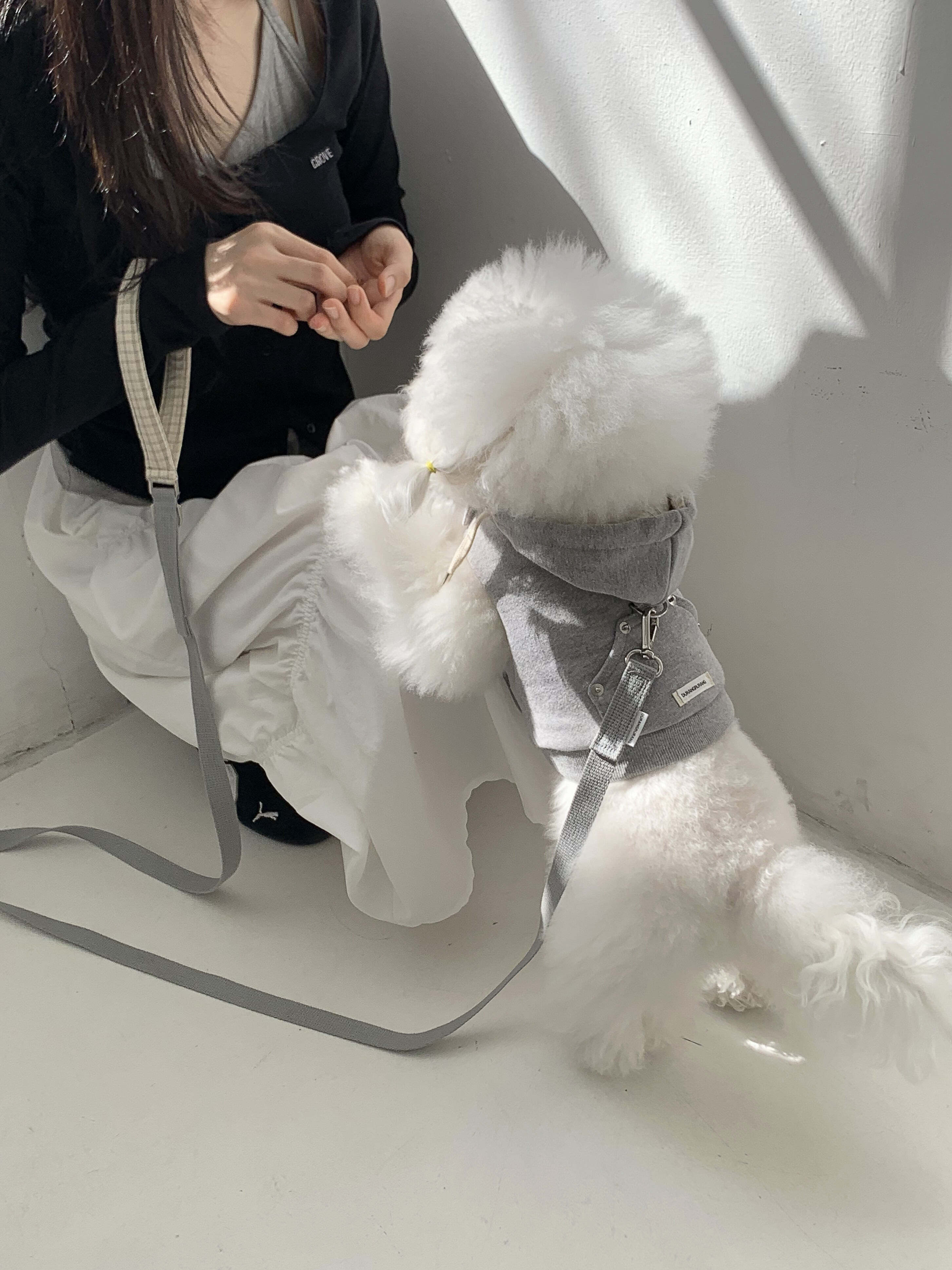 柔らかなジュリ素材で作られたフーディーハーネスです。