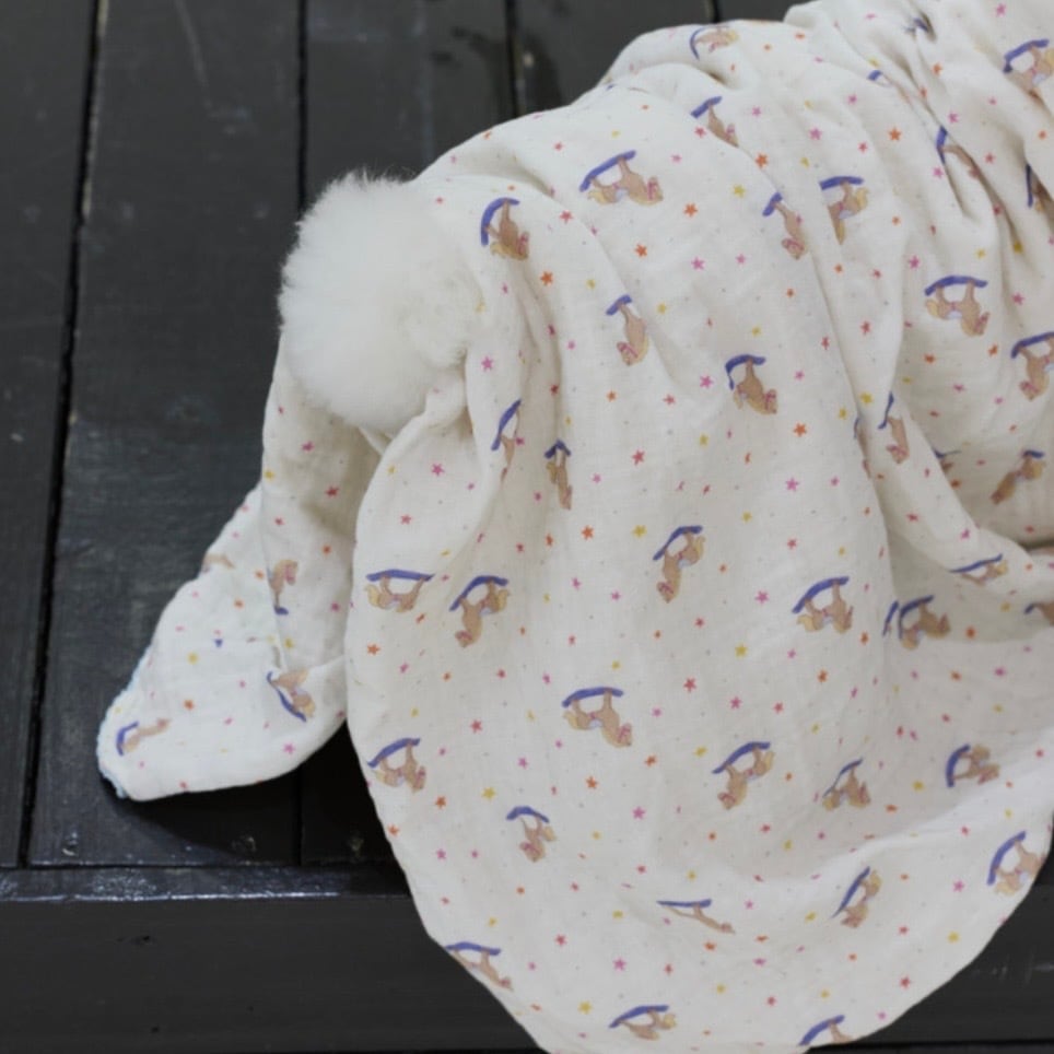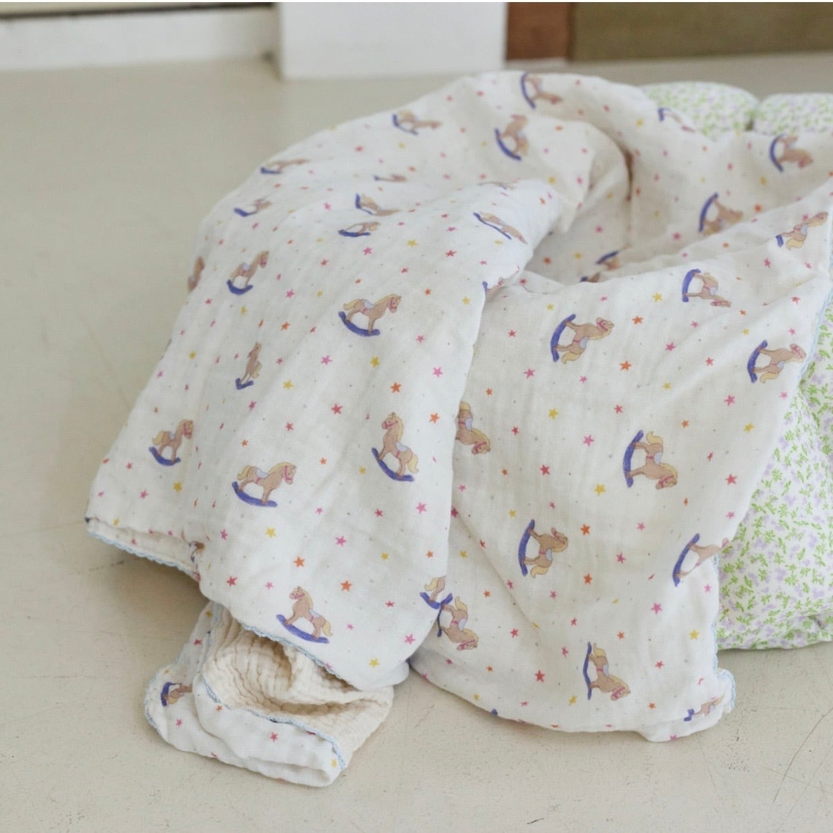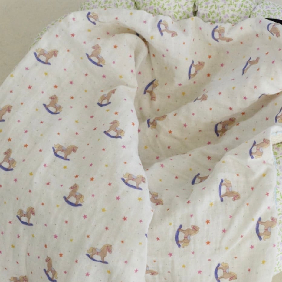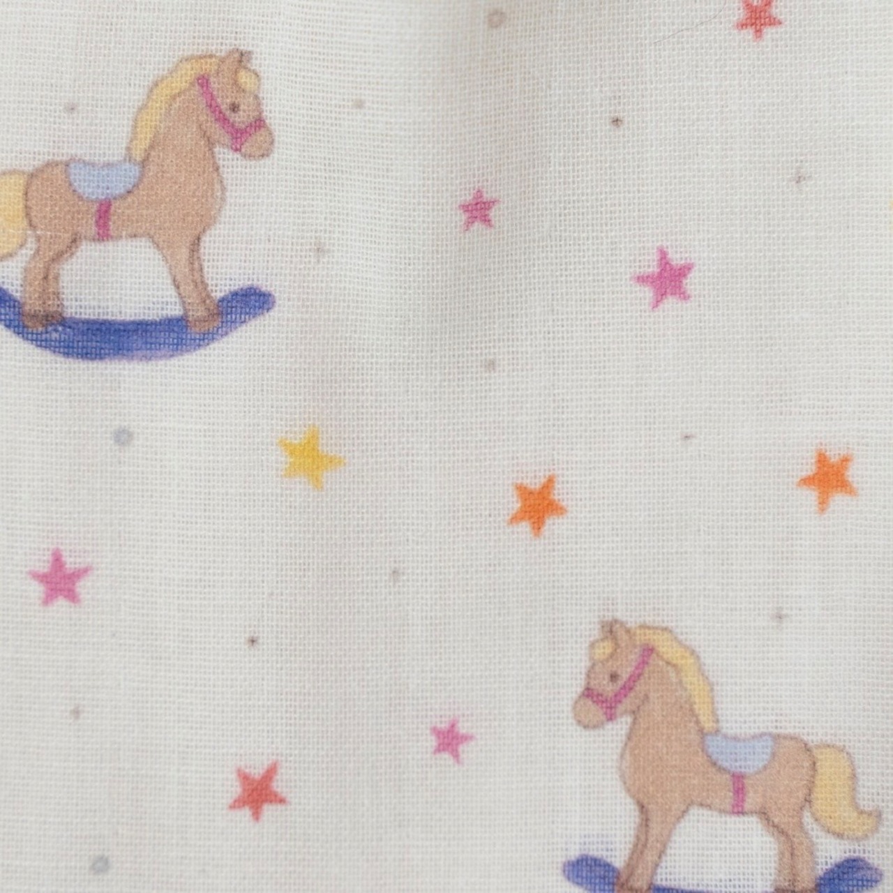 愛らしいポニーと無数の星が降り注ぐ、かわいらしいポニーブランケットです。
