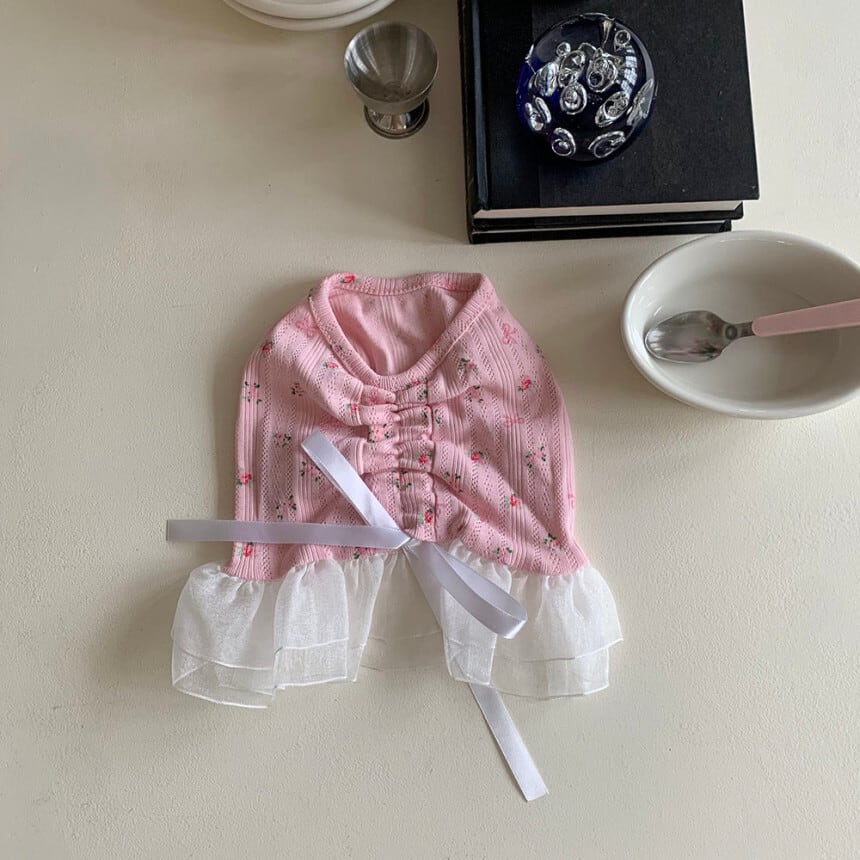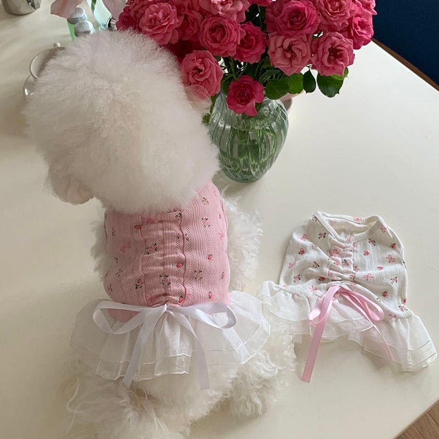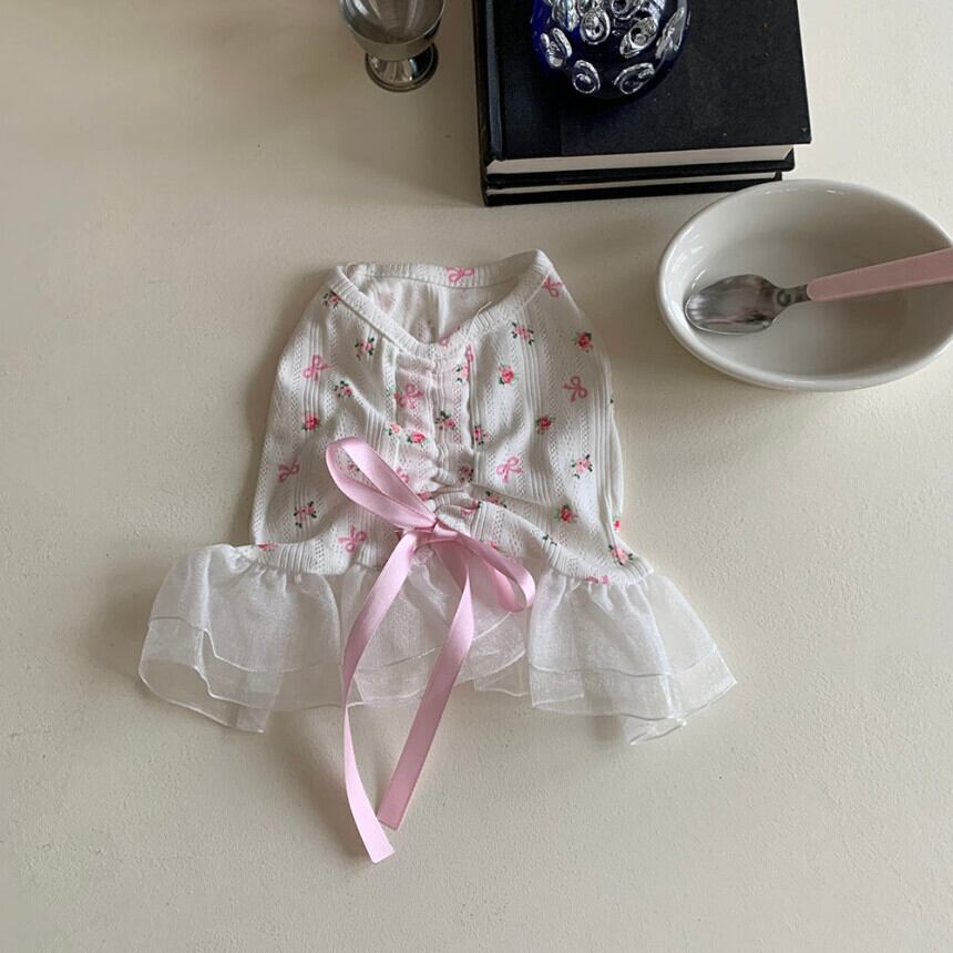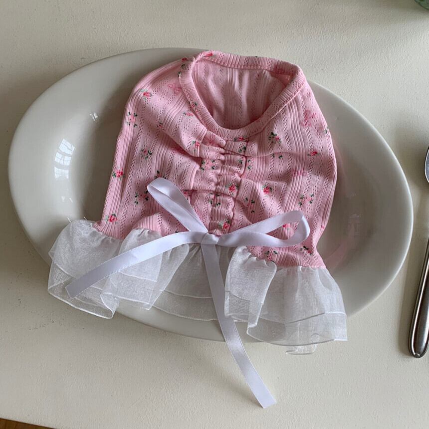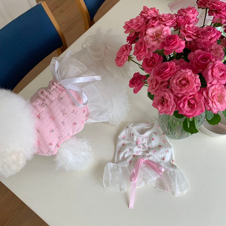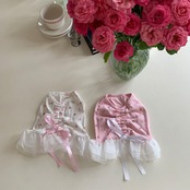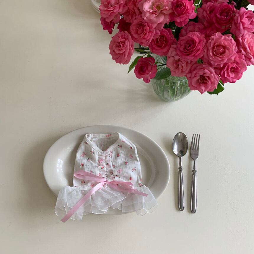 予約【korea select】ballet core flower ribbon frill dress