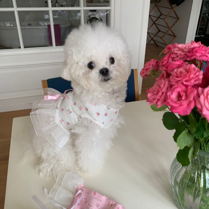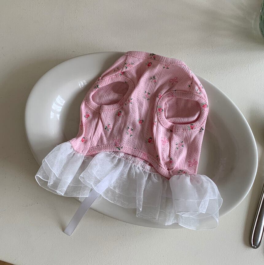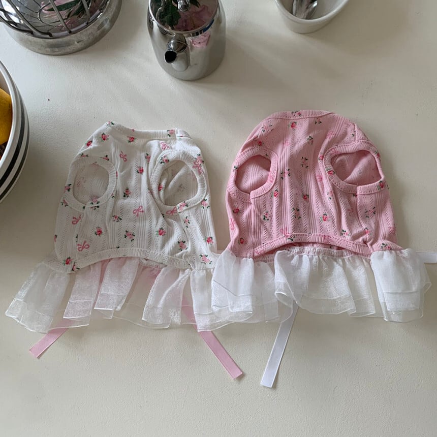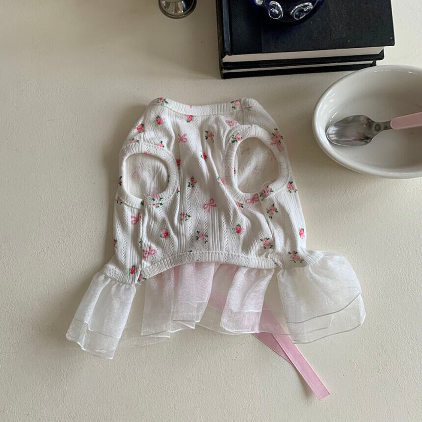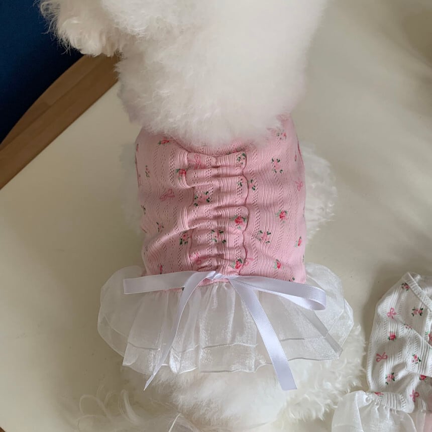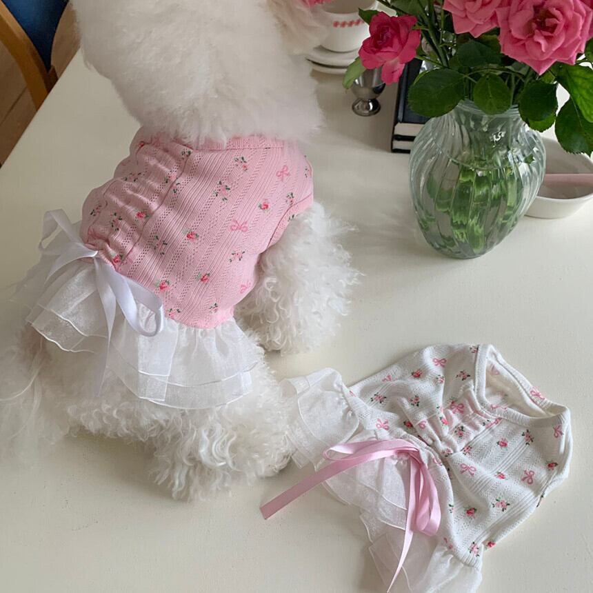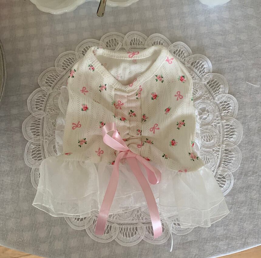 予約【korea select】ballet core flower ribbon frill dress