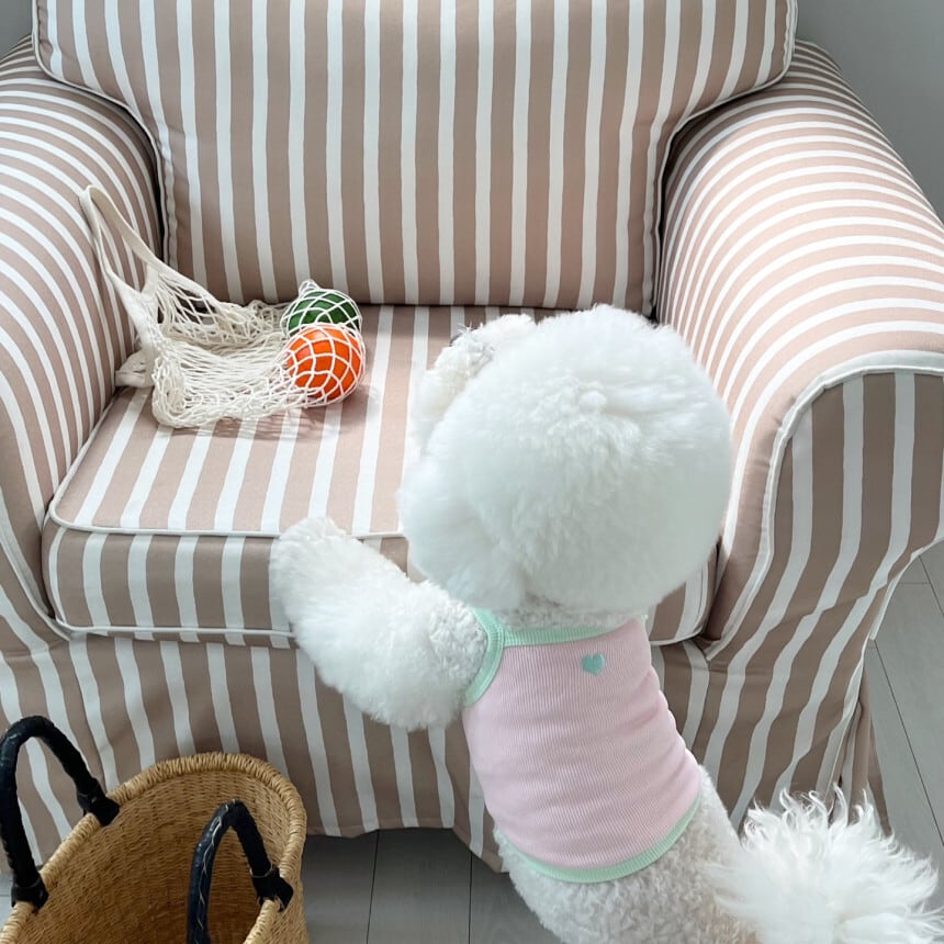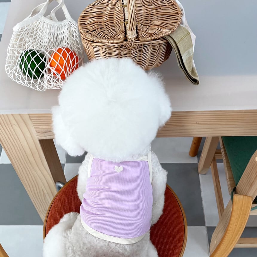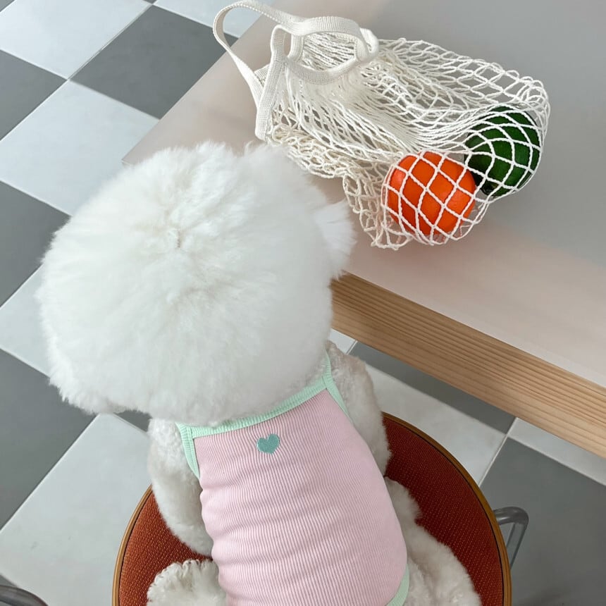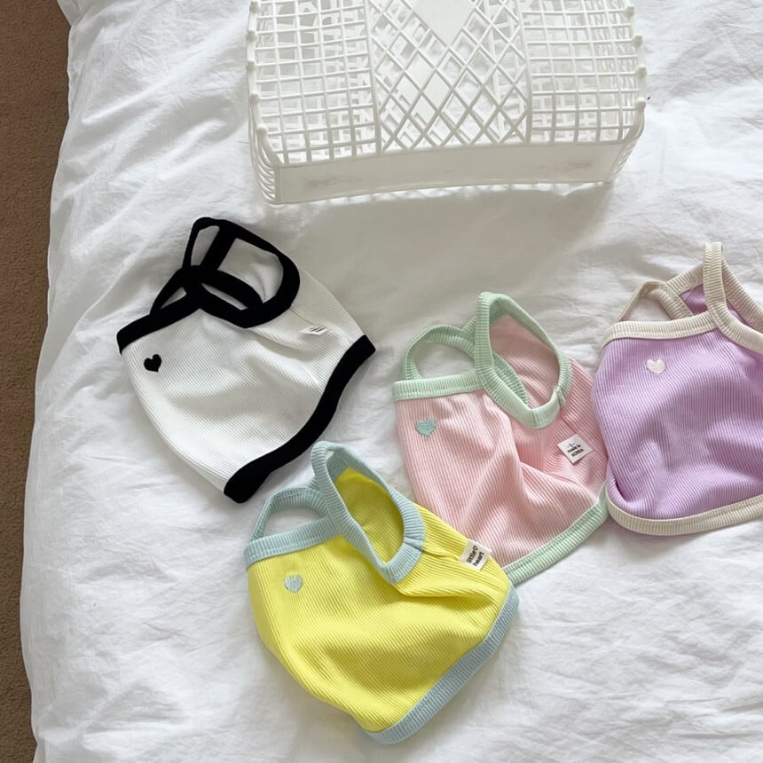 爽やかな色合いに小さなハート刺繍のアクセントがあり、涼しく着られるノースリーブです:)