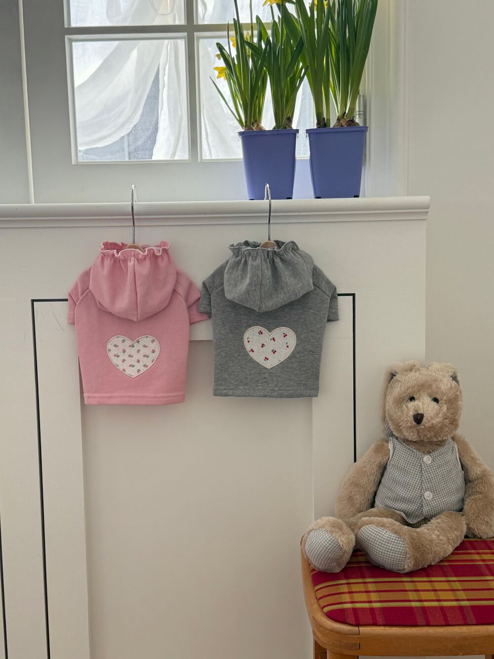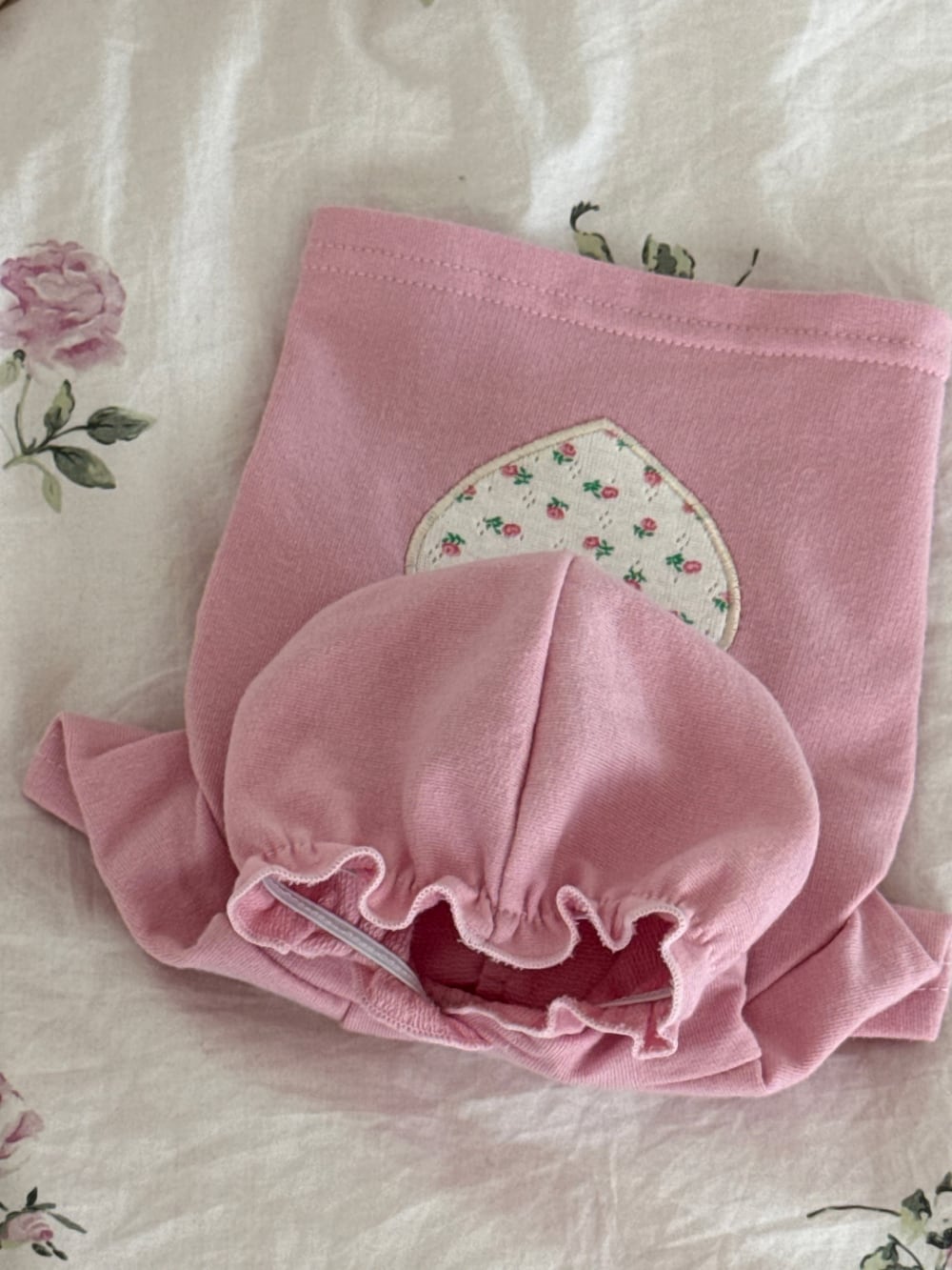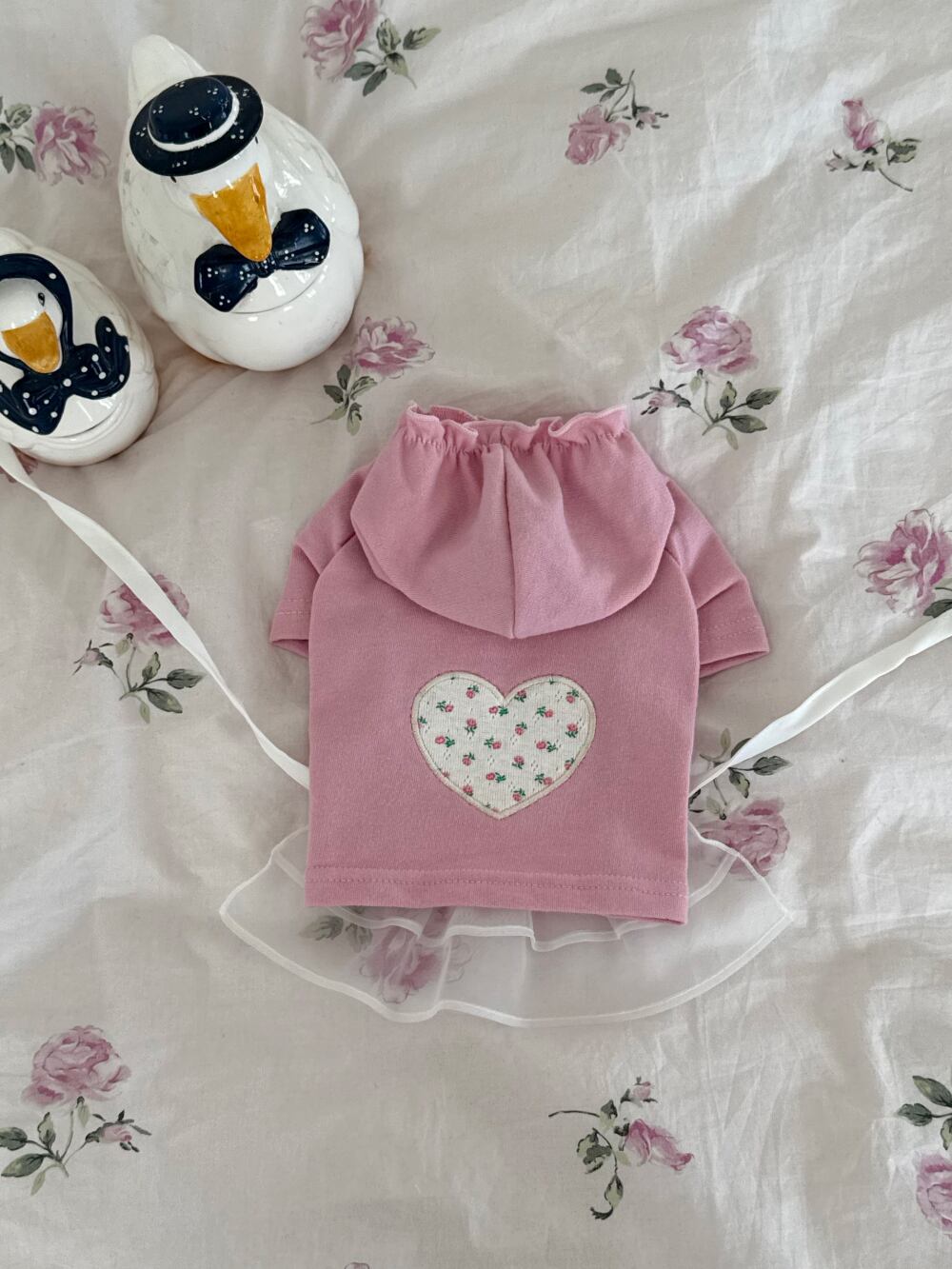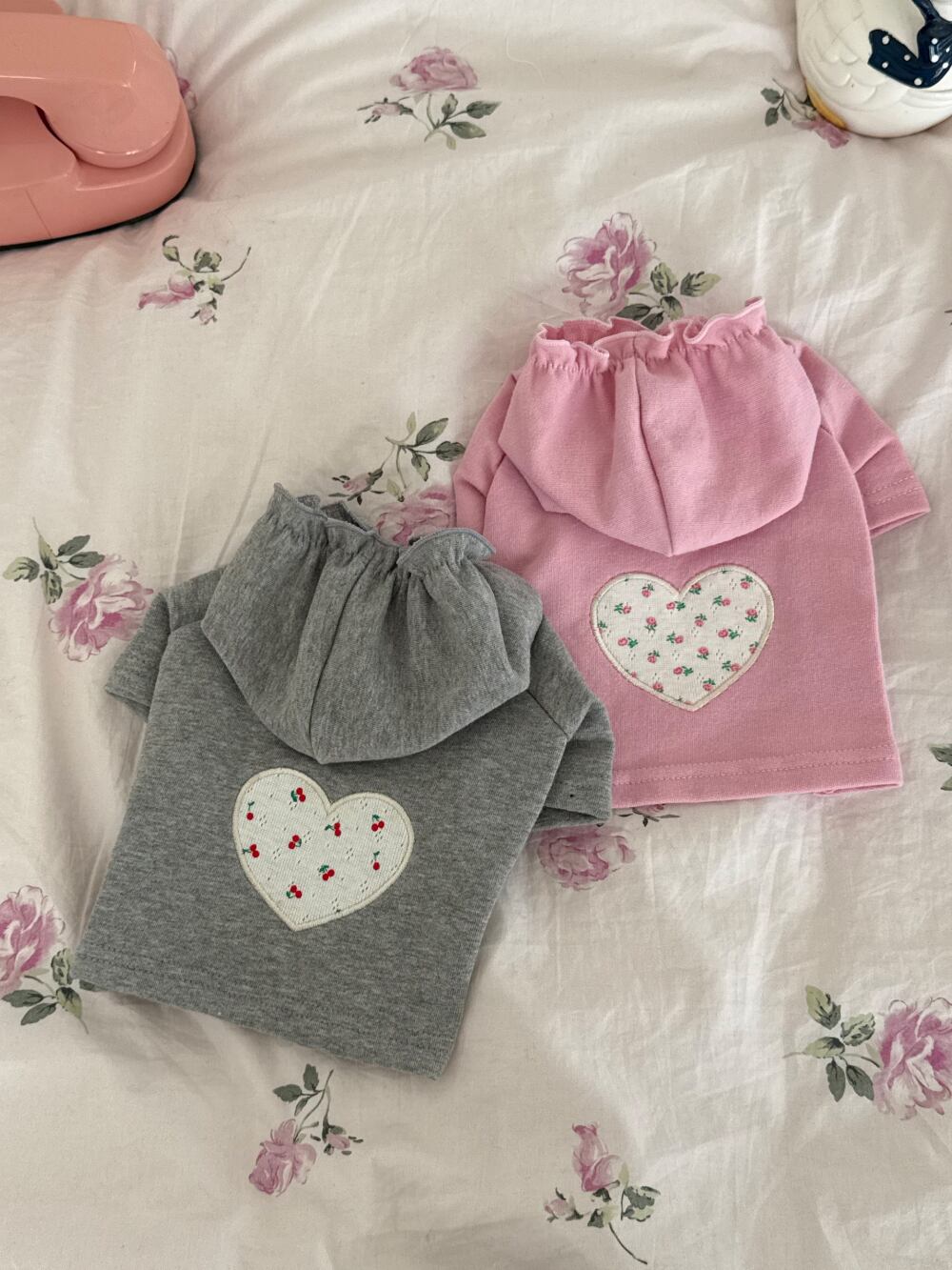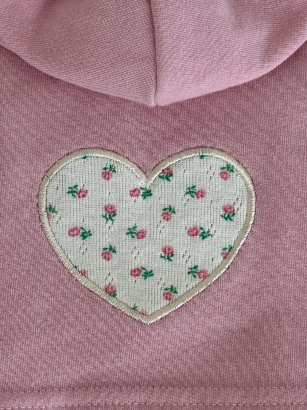 小さなフローラルハートパッチでアクセントを加えた