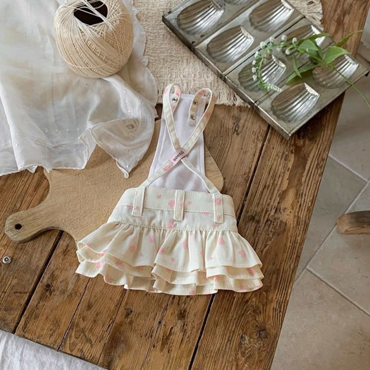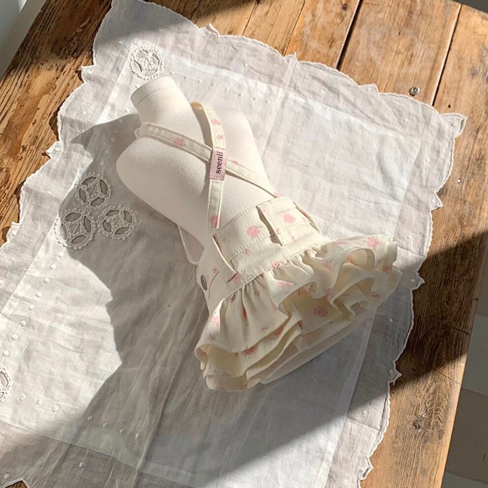落ち着いた桜の模様に少し展開した3層のフリルディテール