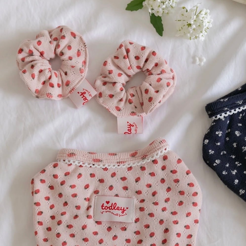 かわいらしい小花とイチゴのパターンで、春シーズンにさわやかに着用できます。