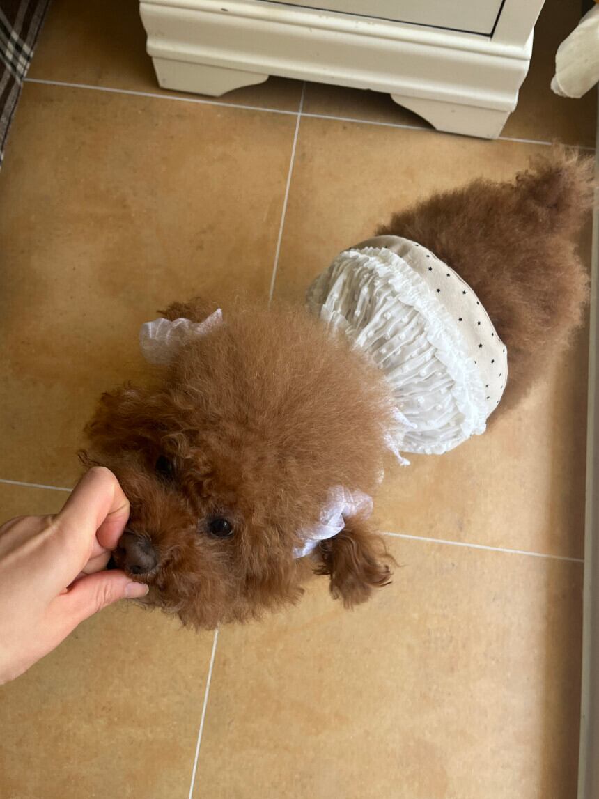 紅参はLサイズのスカート、Lサイズの頭巾を着用しました。