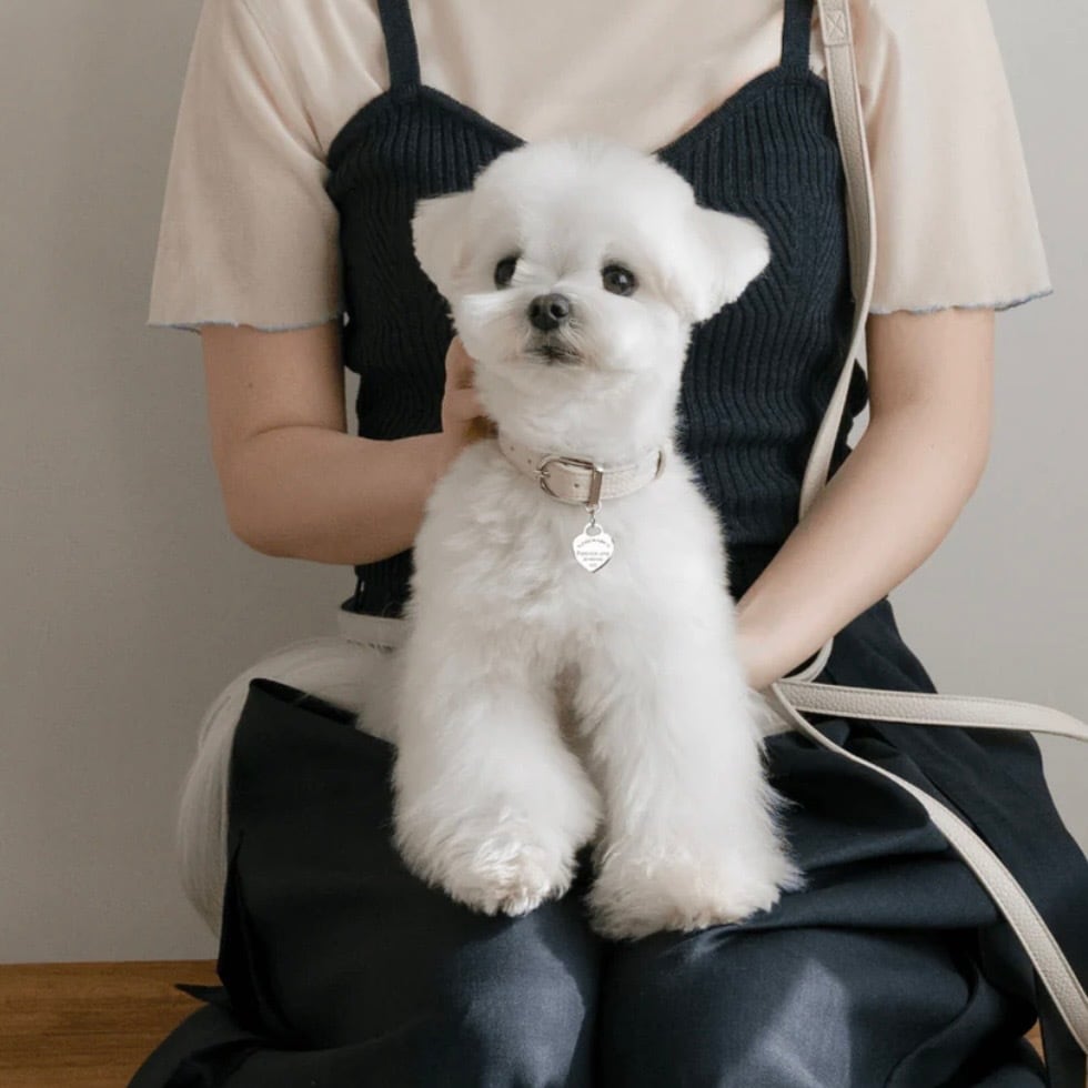 シンプルで合わせやすく落ち着いたデザイン。柔らかなトーンのクリームカラーはどんな毛色のわんちやんにも馴染みます。シルバーの金具でより上品な印象に。