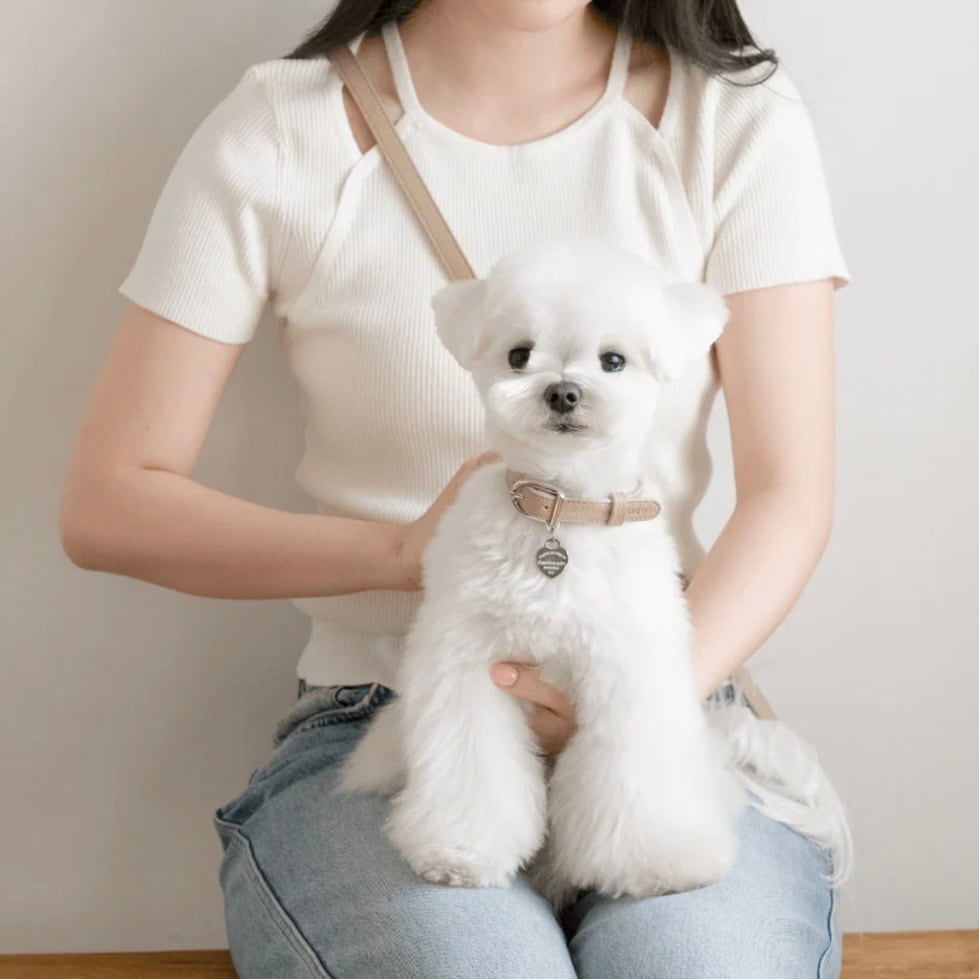 シンプルで合わせやすく落ち着いたデザイン。柔らかなトーンのクリームカラーはどんな毛色のわんちやんにも馴染みます。シルバーの金具でより上品な印象に。