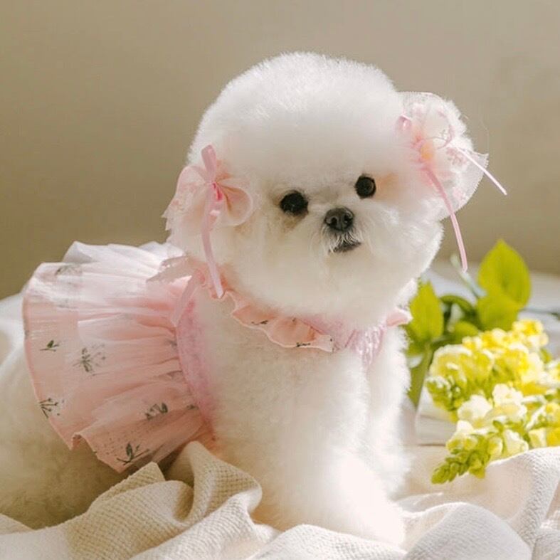 ティンカーベルドレスと同じフラワーメッシュ素材にサテンリボンを