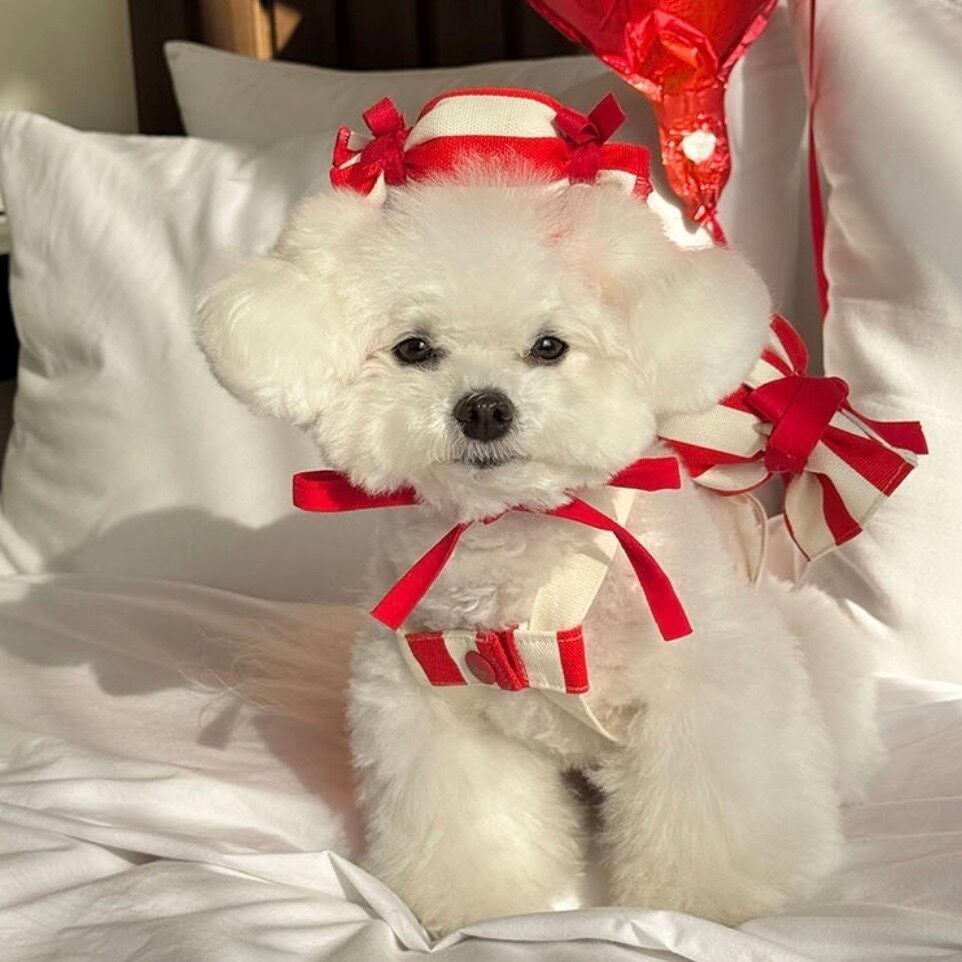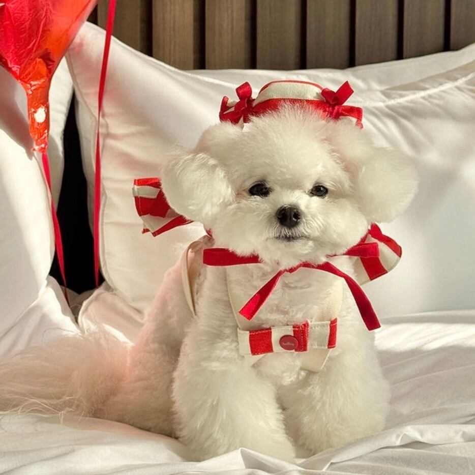 顔の下にリボンで結ぶデザインで、可愛らしさもプラスしました。