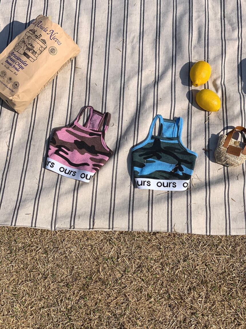即納[ours,]Logo sleeveless top(camo blue)