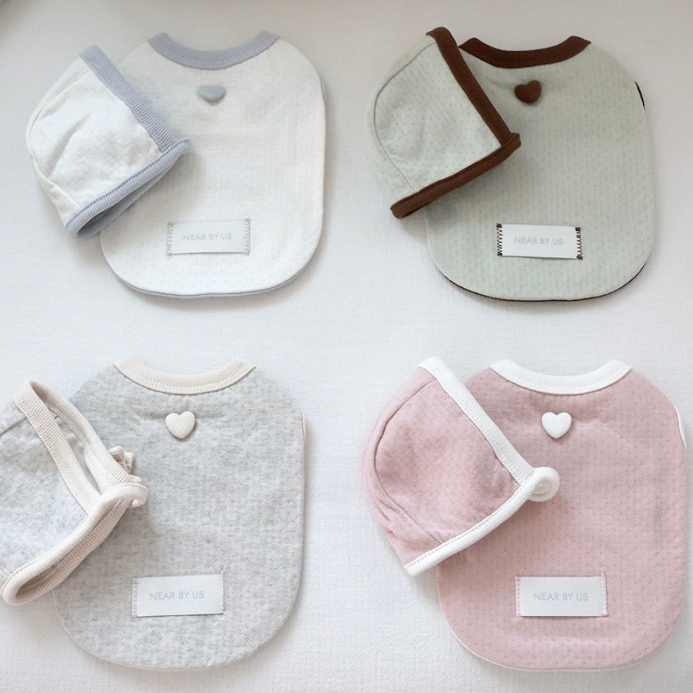 着心地の良いダブルアイレット生地に可愛いカラーのボンネット+ノースリーブのセットな着心地の良いピュアコットンファブリック、香りのディテール!