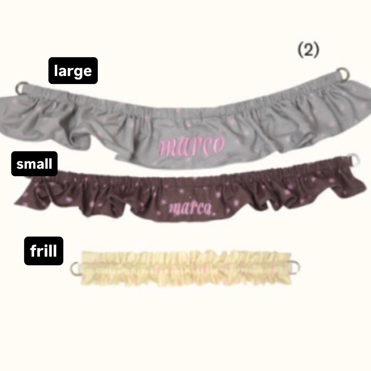 飼い主様が教えてくださったサイズと完成した首輪の総長さは約2cmの差があります。 このフリルカバーの厚みが原因で生じた誤差なので