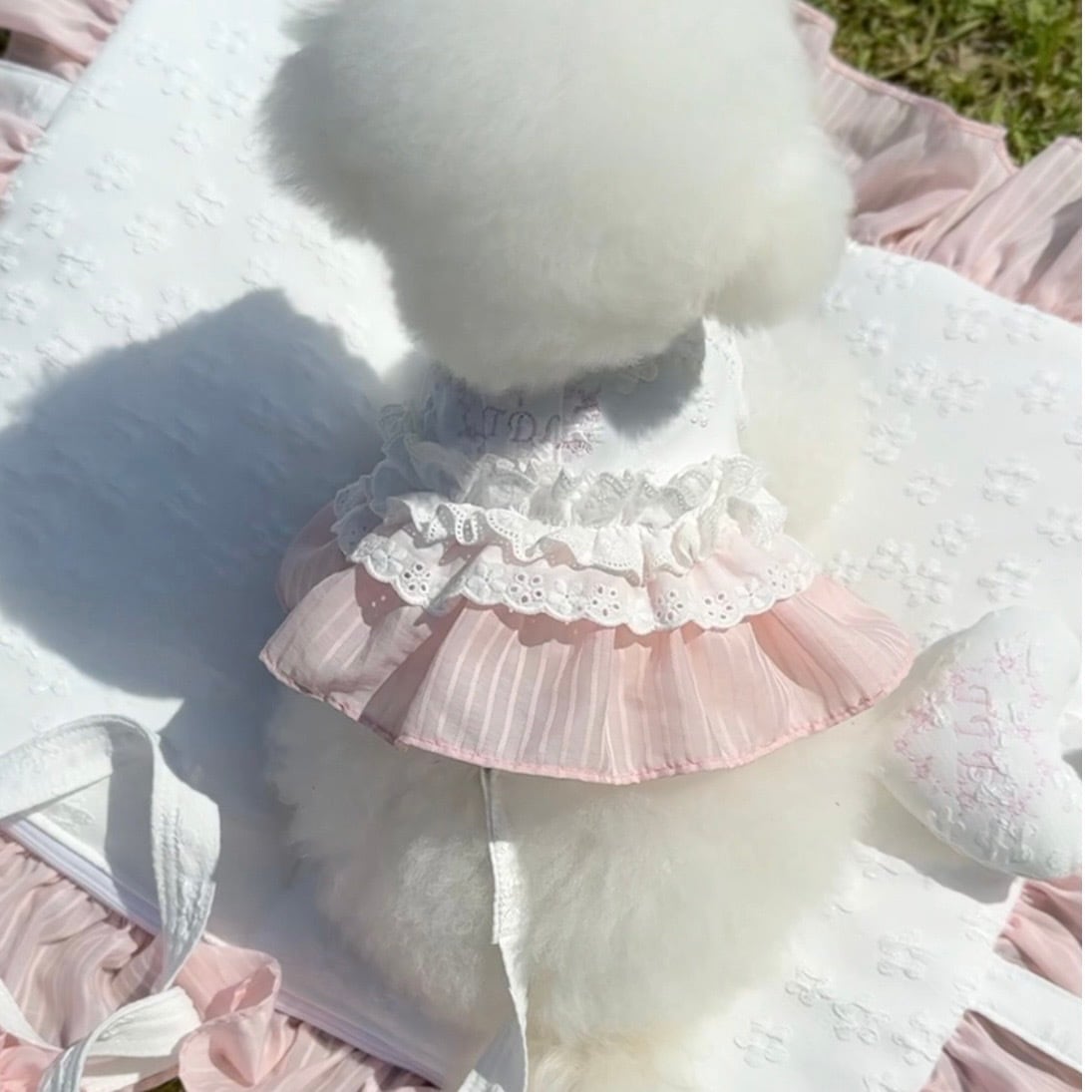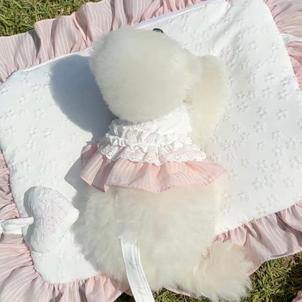 ネックラインの二重レースとフリルのポイントで 友達の可愛い顔を照らしてくれます