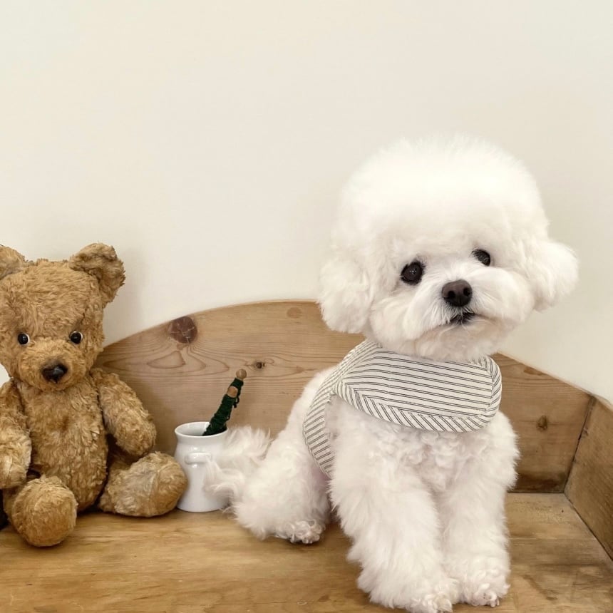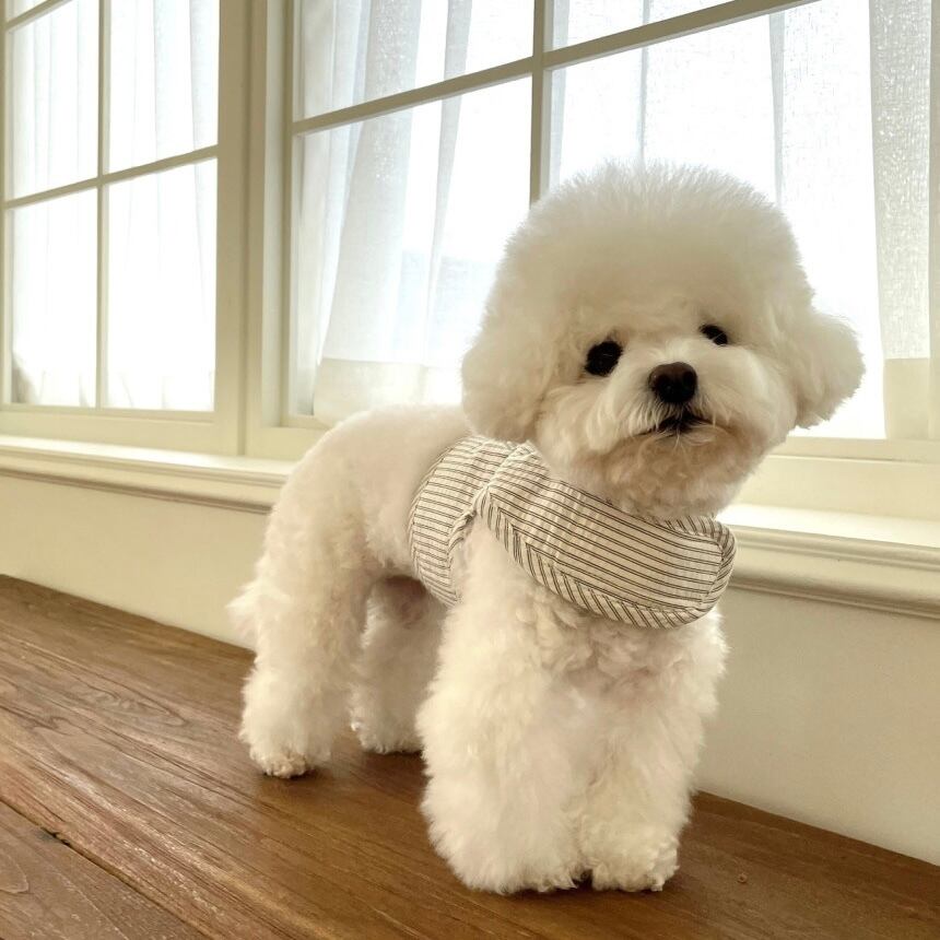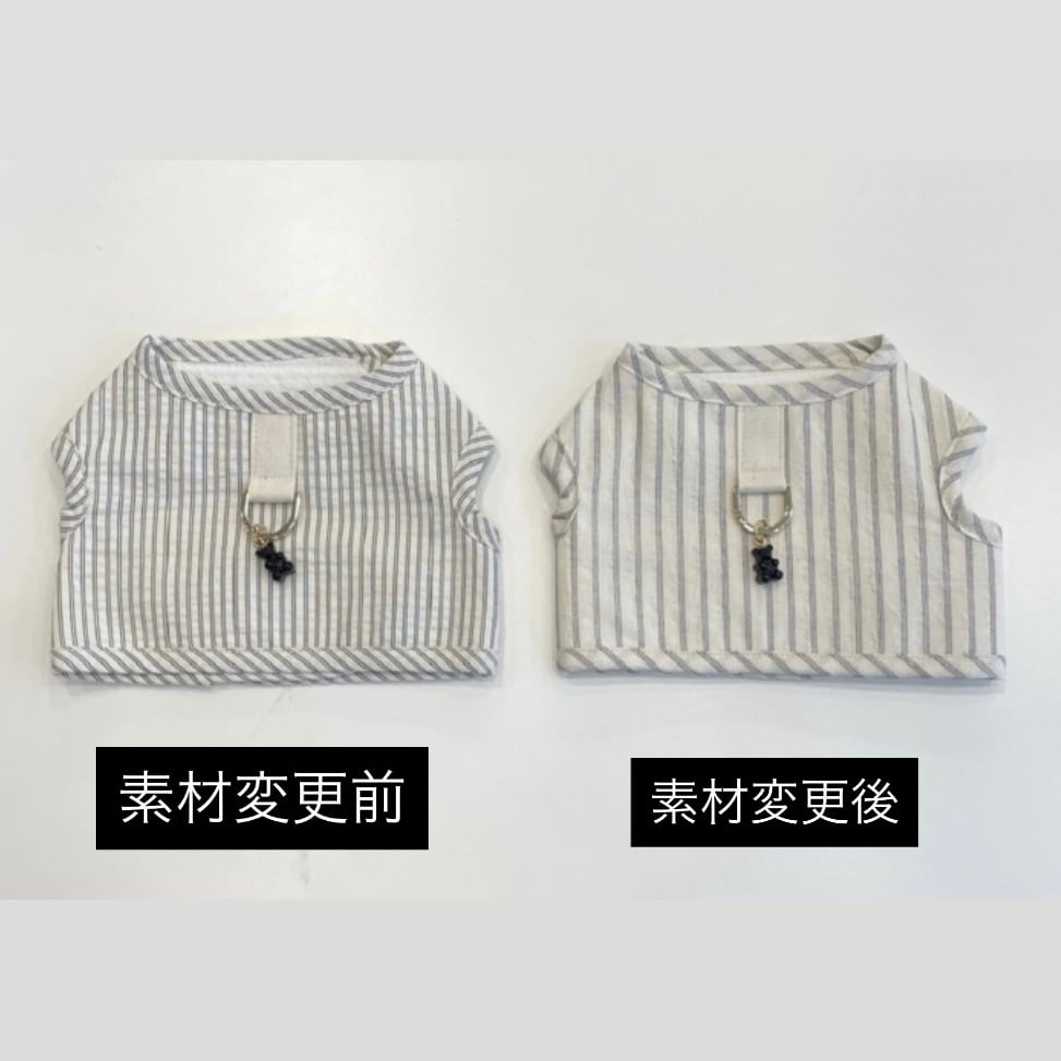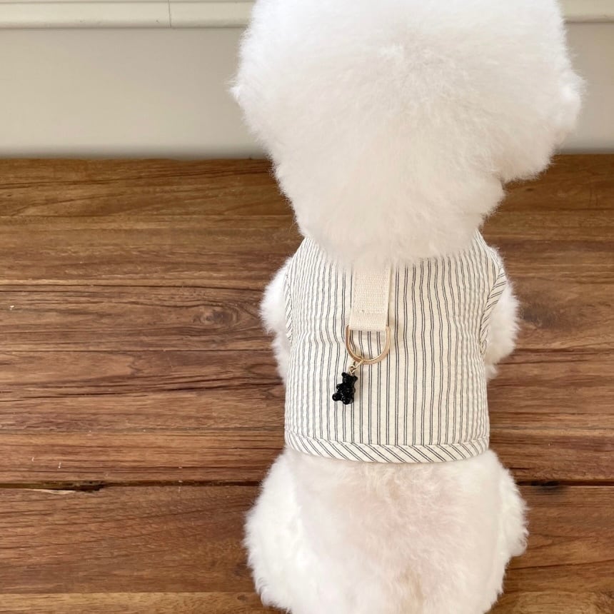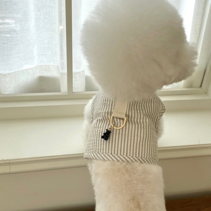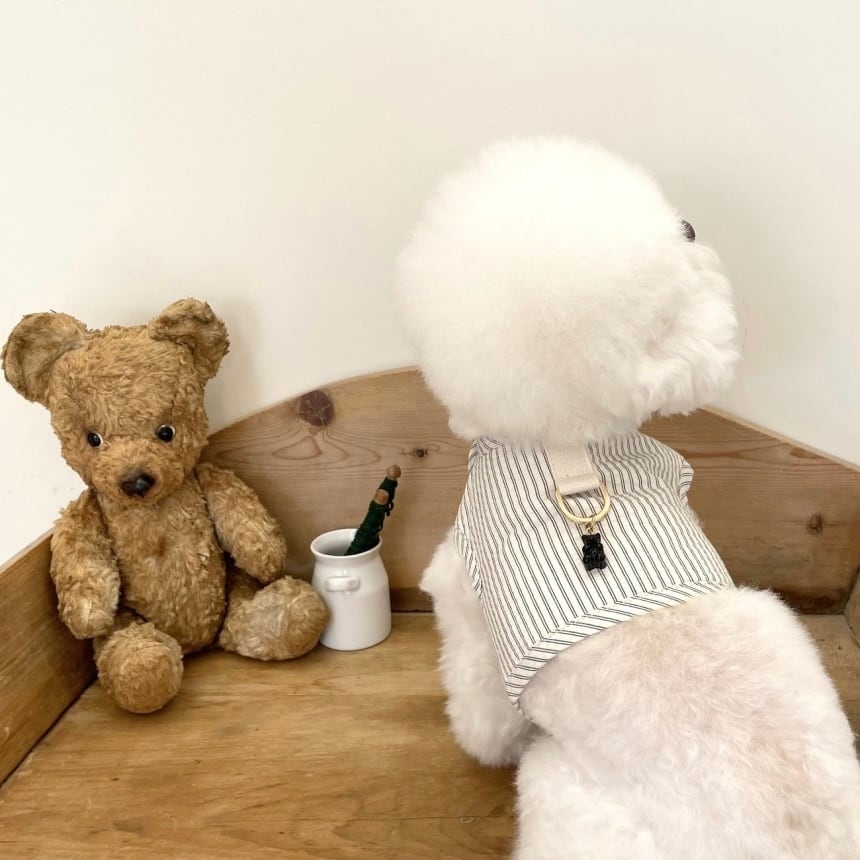 ジャガードストライプ素材を使用したハーネス シンプルなデザインにかわいいクマのモチーフでアクセントを加えました