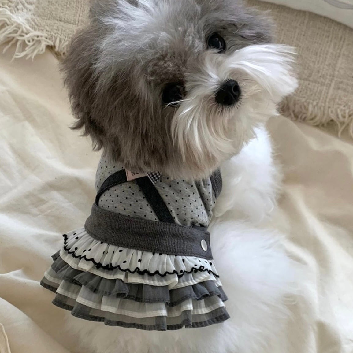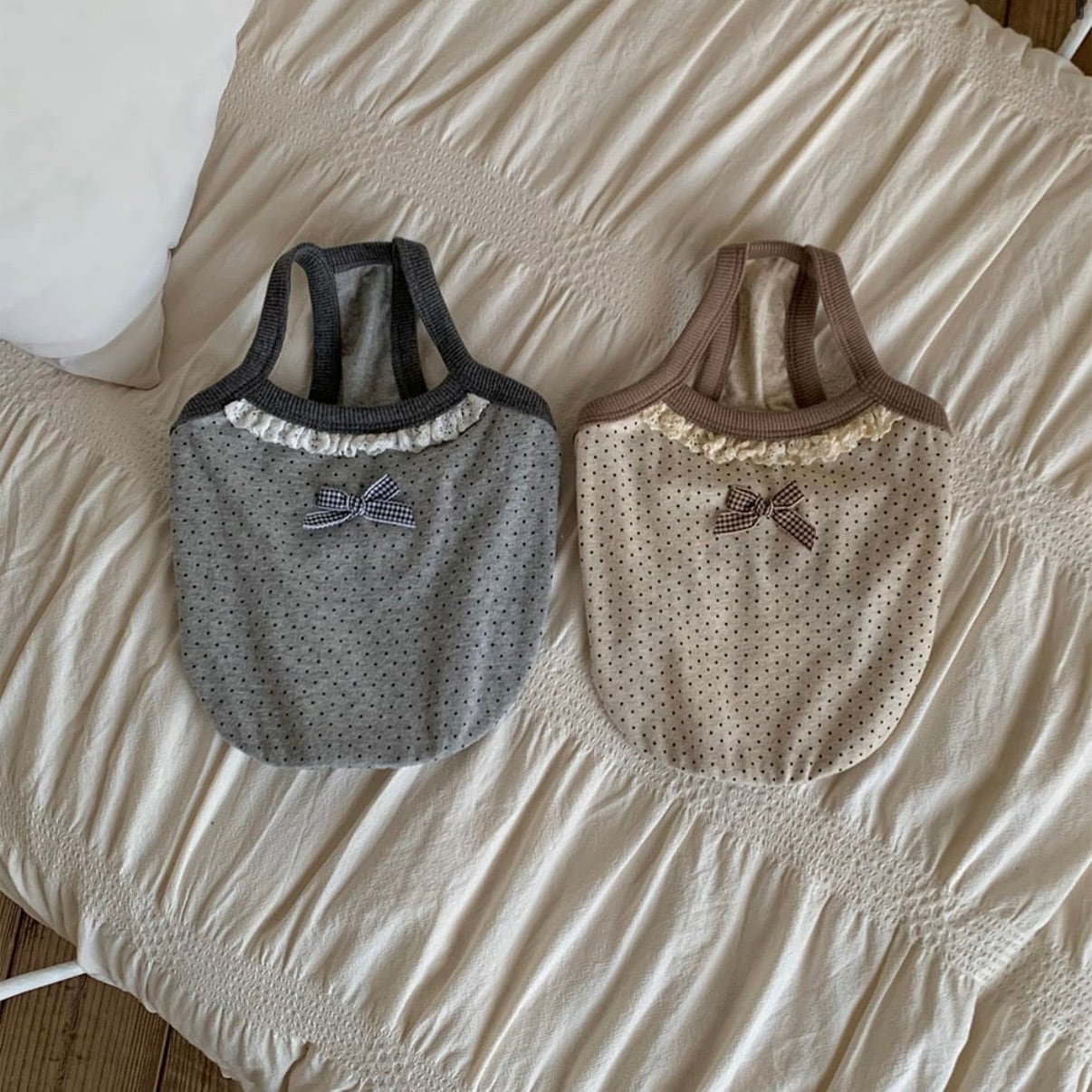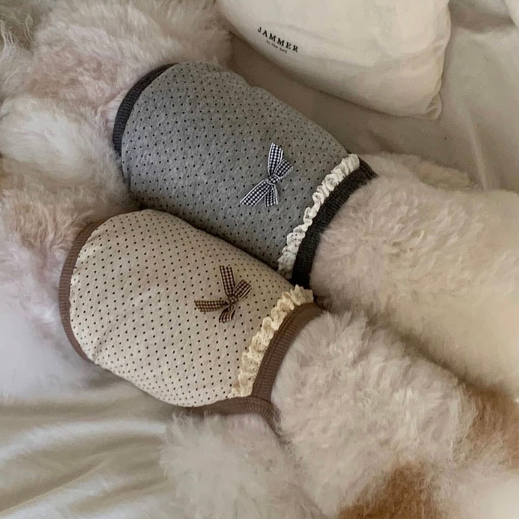 冷静に散りばめられたミニドット柄に小さなレースのディテールでさえ