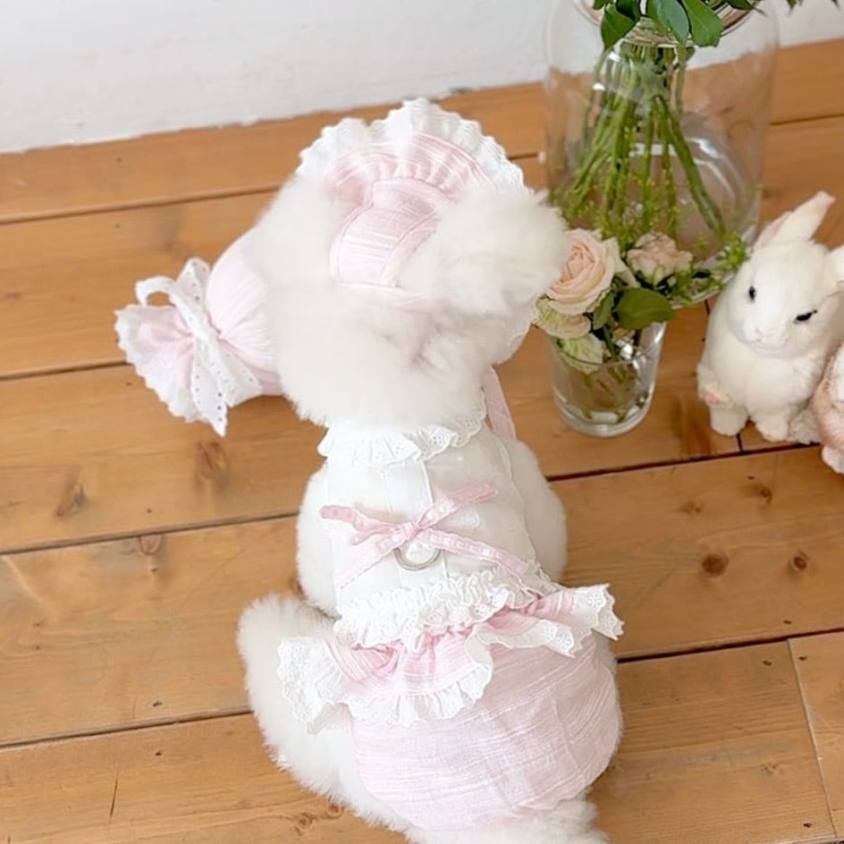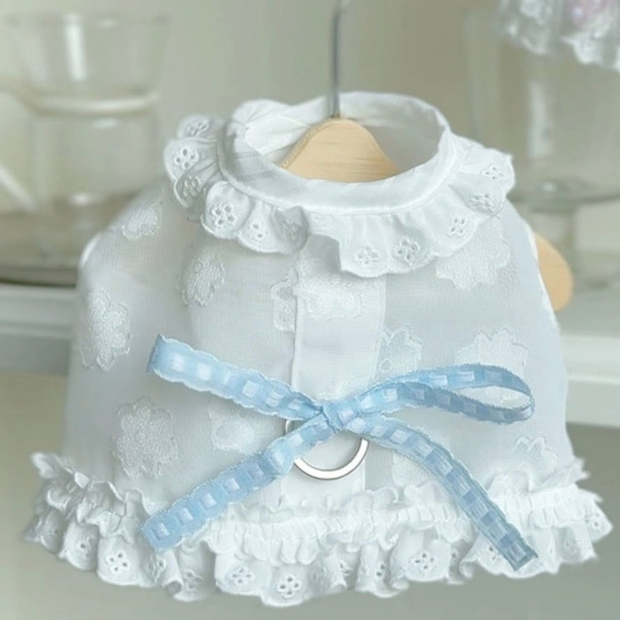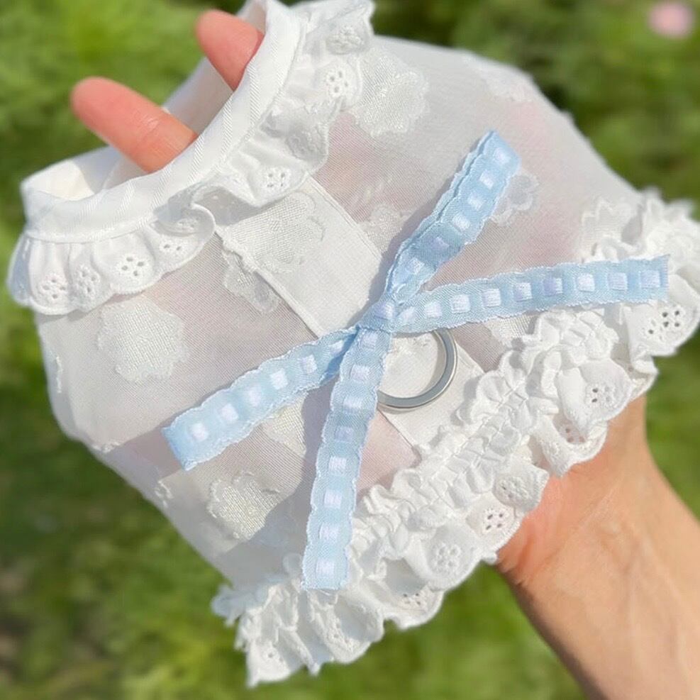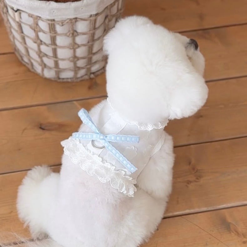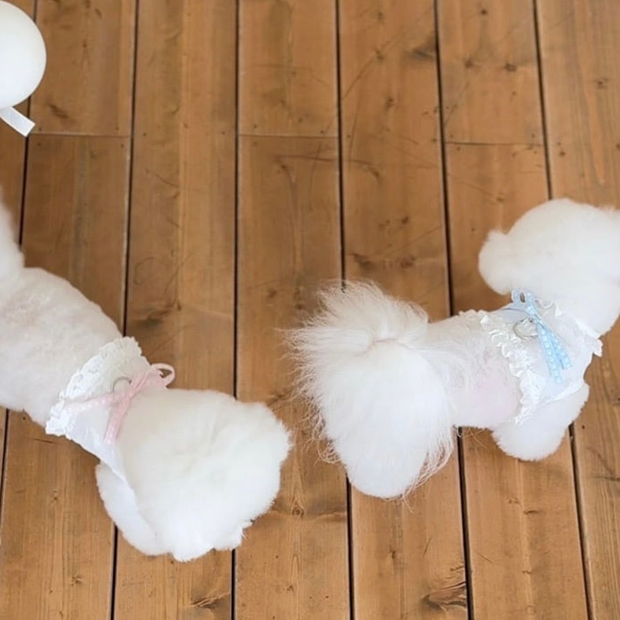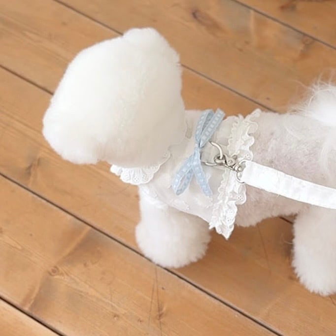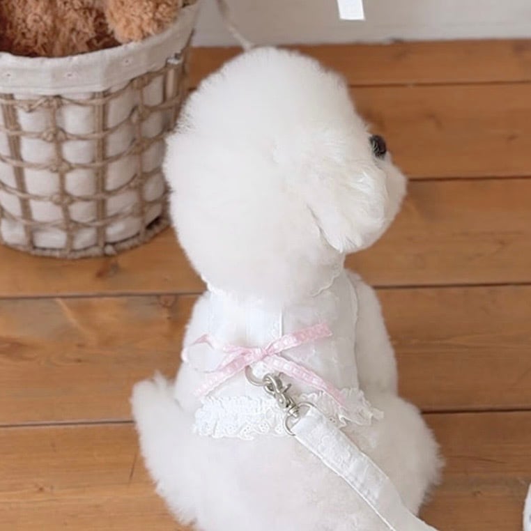 ベビーのムードに合わせて、小さなレースを使用し、キュートな雰囲気をたっぷりと詰め込みました、リボンのカラーによって異なるムードを演出でき、リボンだけを追加で購入すれば、2種類のハーネスをすべて楽しめます。