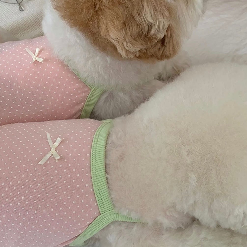 落ち着いたミニドットに繊細なリボンがポイント