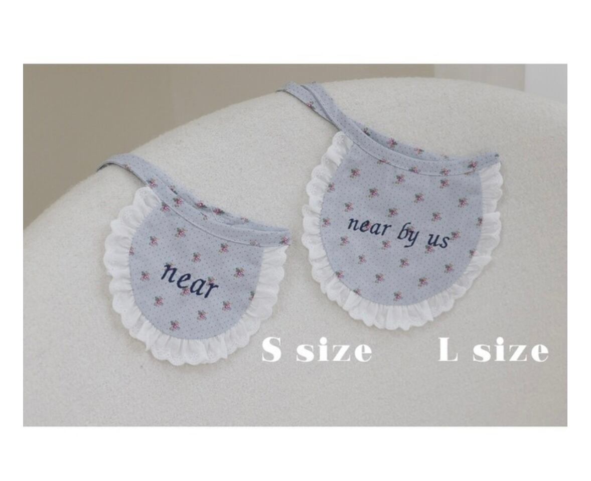ネーム刺繍【near by us】フラワービブ(ブルー)