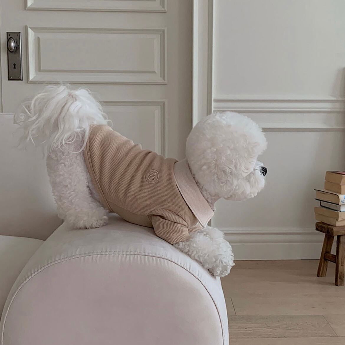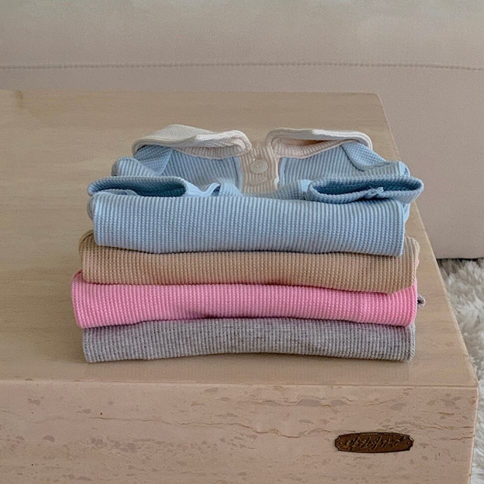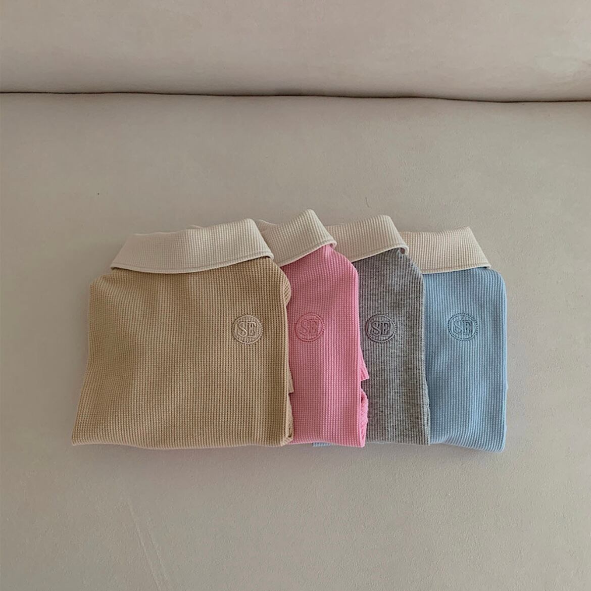 可愛いラウンドカラーのワッフルテクスチャと仕上がり高いブランドロゴ刺繍がポイント!