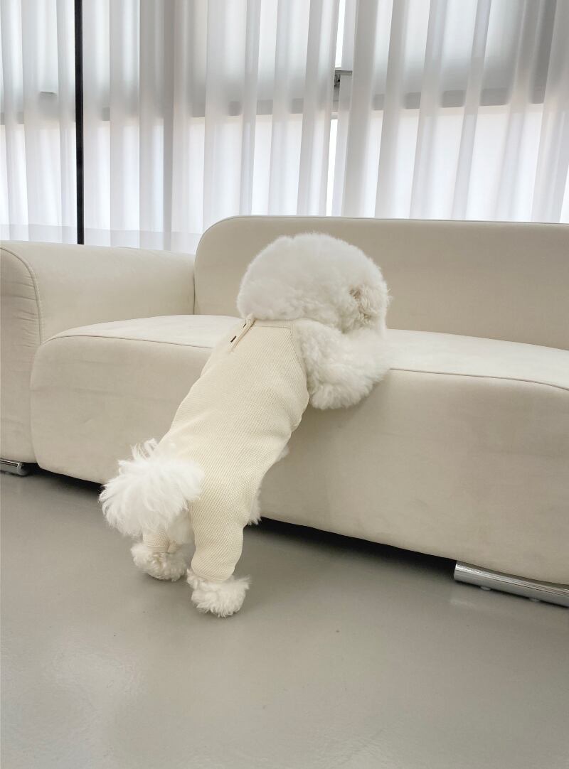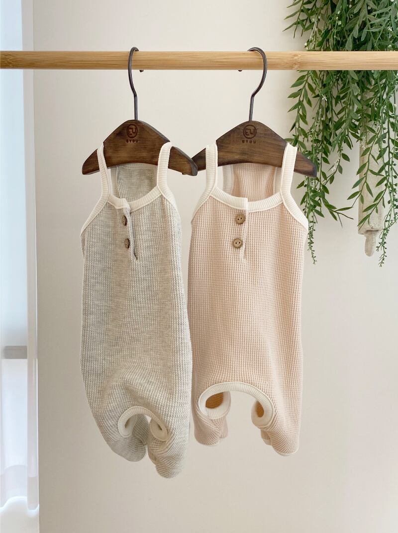 もちっとしたワッフル編みの生地で製作されたオールインワンです。