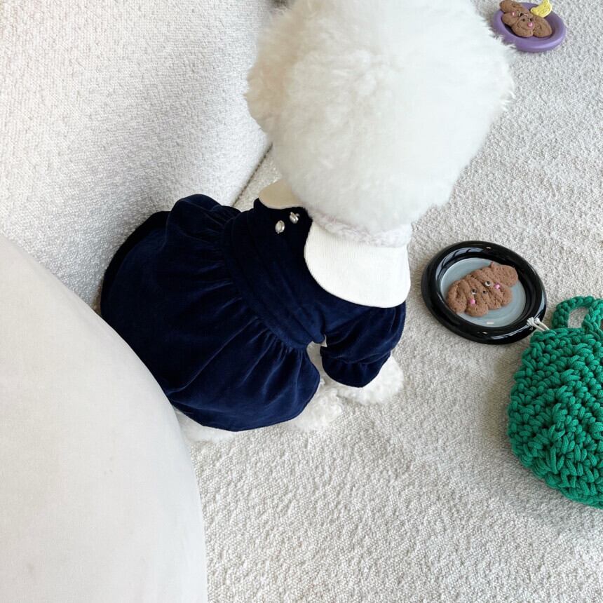 即納【korea select】Velvet one-piece (navy)