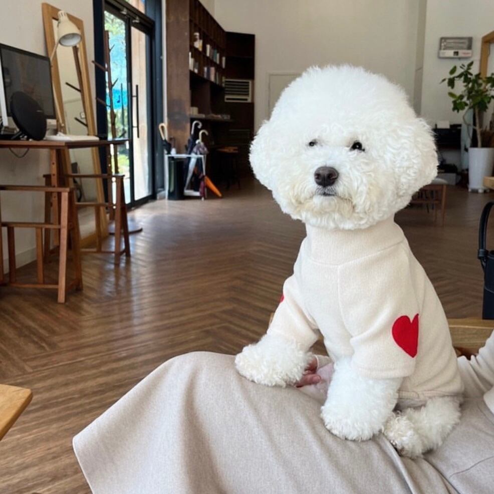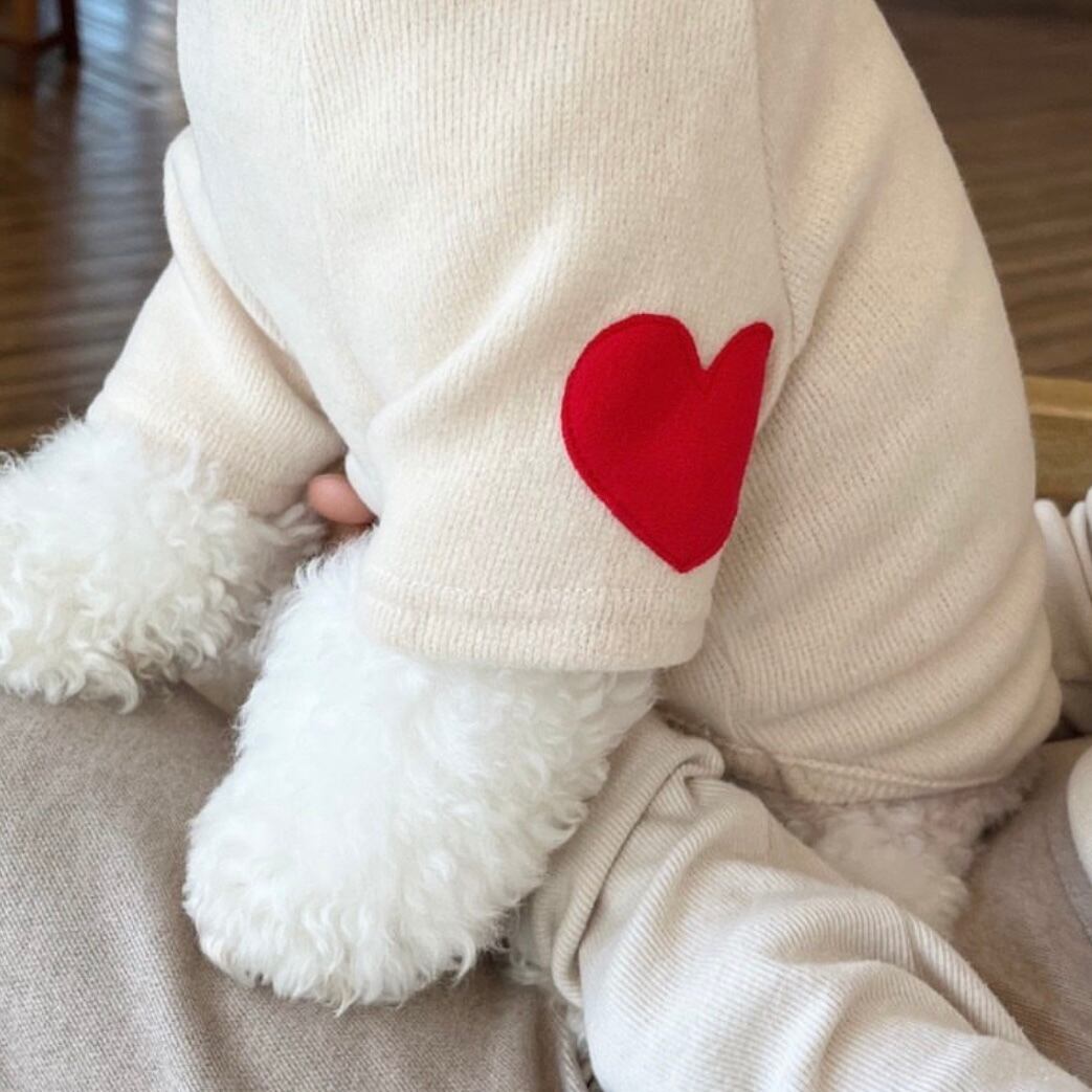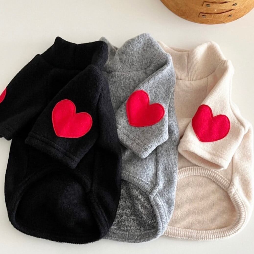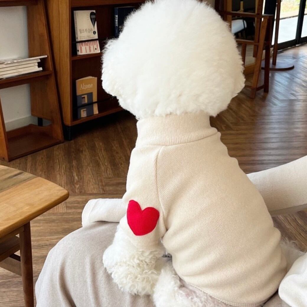 真っ赤なハートパッチがポイントの柔らかい肌触りのニットタートルトップスです!