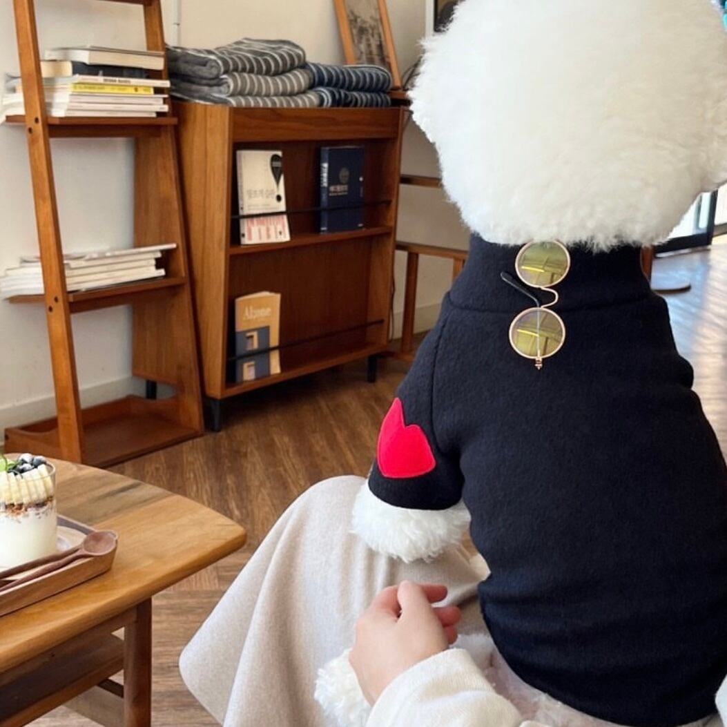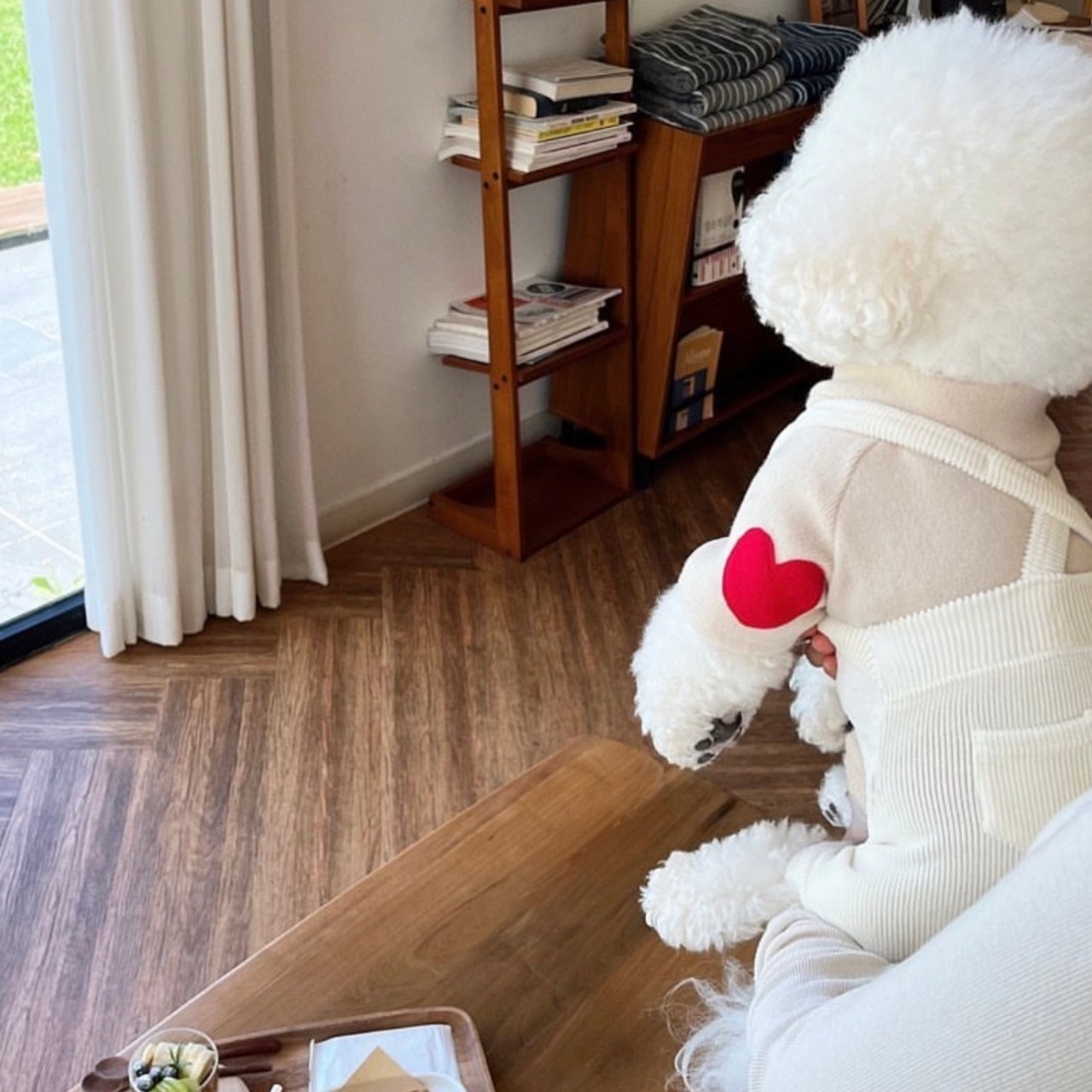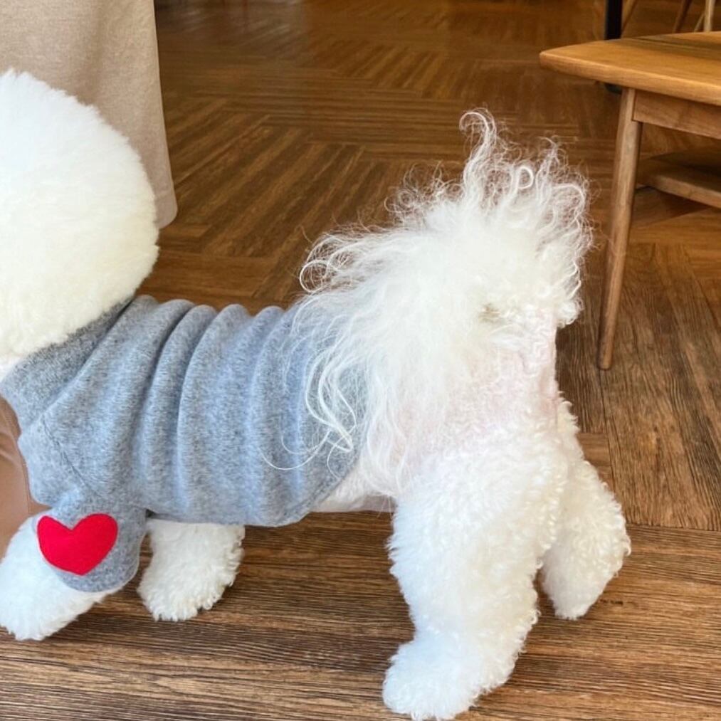 真っ赤なハートパッチがポイントの柔らかい肌触りのニットタートルトップスです!