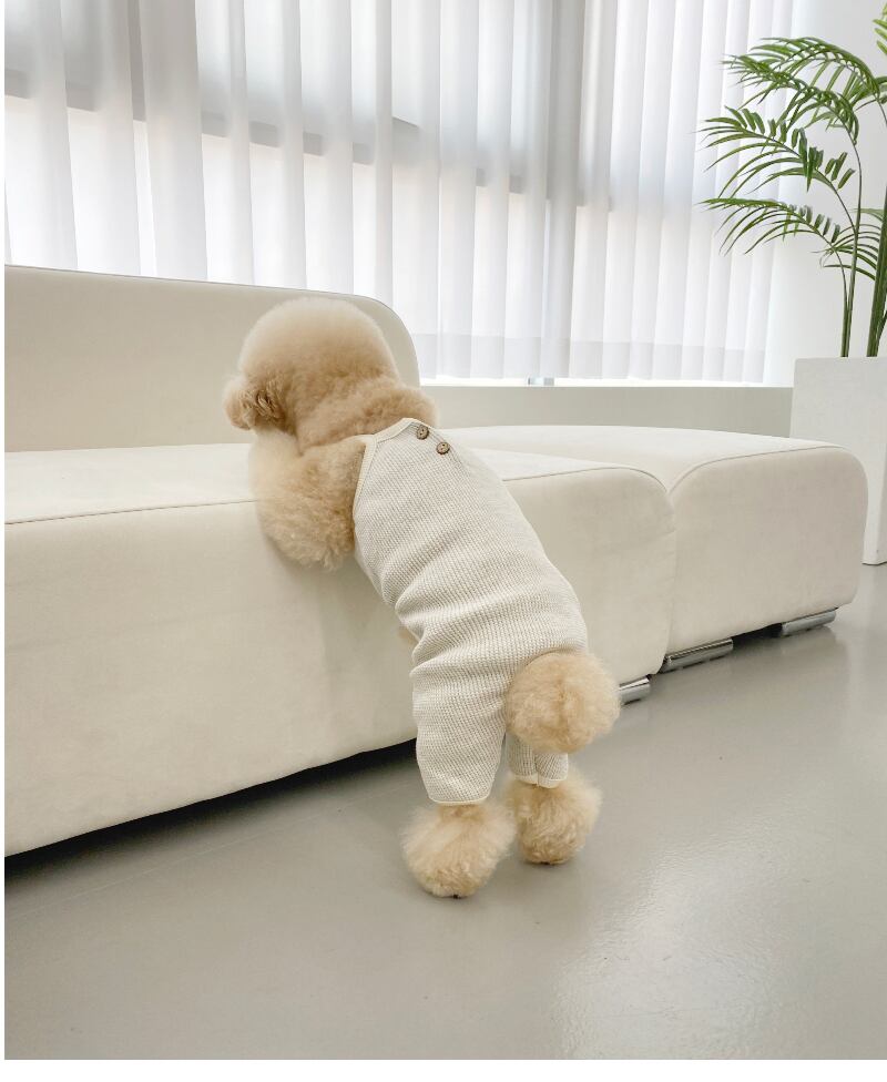 もちっとしたワッフル編みの生地で製作されたオールインワンです。
