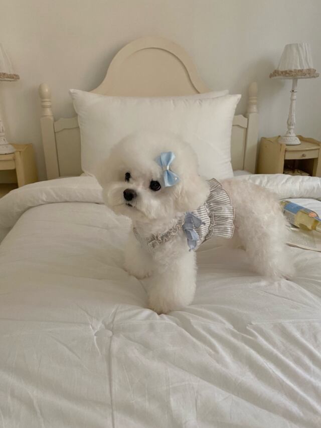 リボンの結び目がほどけたり、走ったりするたびに、リボンがぶら下がって邪魔にならないように服に完全に固定しました。