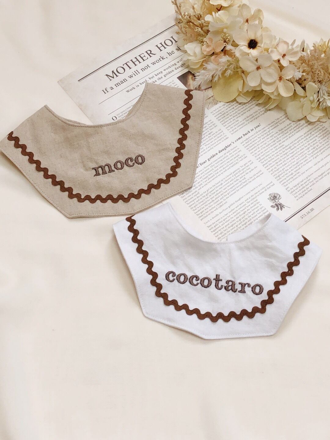 お急ぎ便停止中【ネーム刺繍】cappuccino bib *