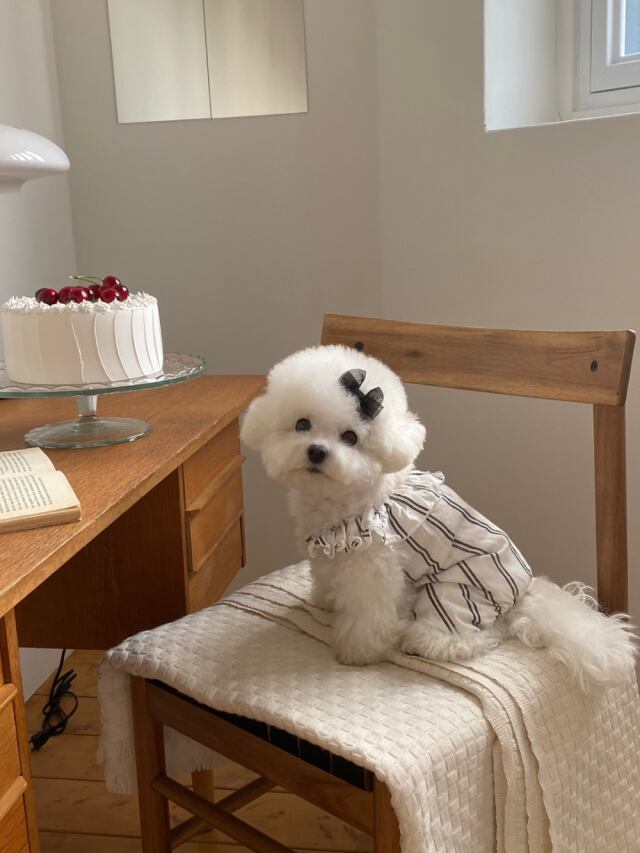 クロップワンピースには最初からリボンは付いていませんので別売りのブローチを付けるのがおすすめです。