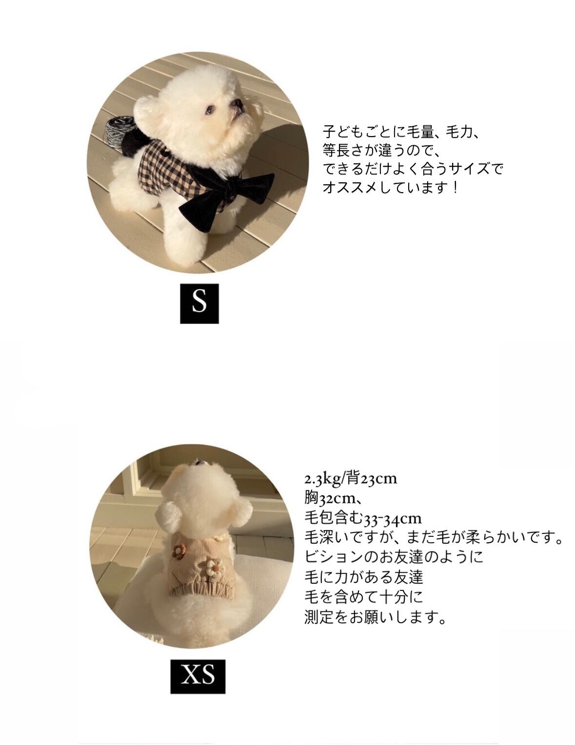 3.8kg 胸38cmなど28cm - sとsmの両方に合う (毛量と好みによって決定)