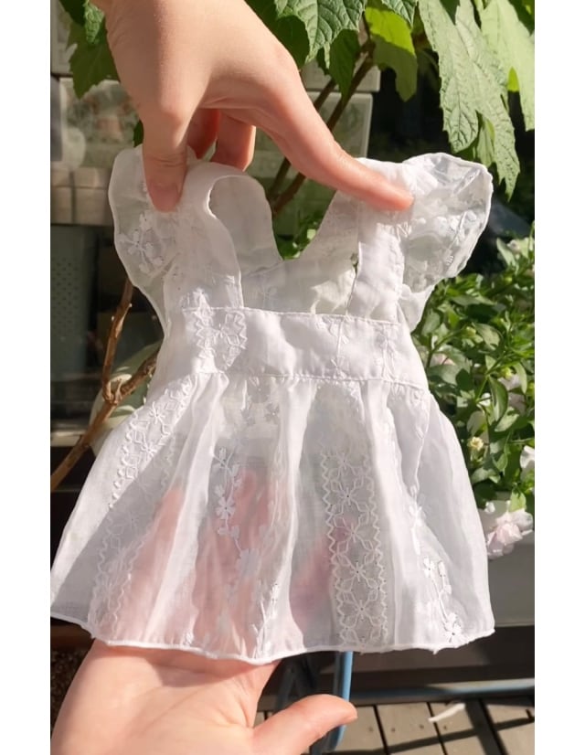 透けるほど薄い生地で夏に軽く着やすいスタイルです 2つのパターンの刺繍が入っていてユニークでウエストにベルクロがあって着脱
