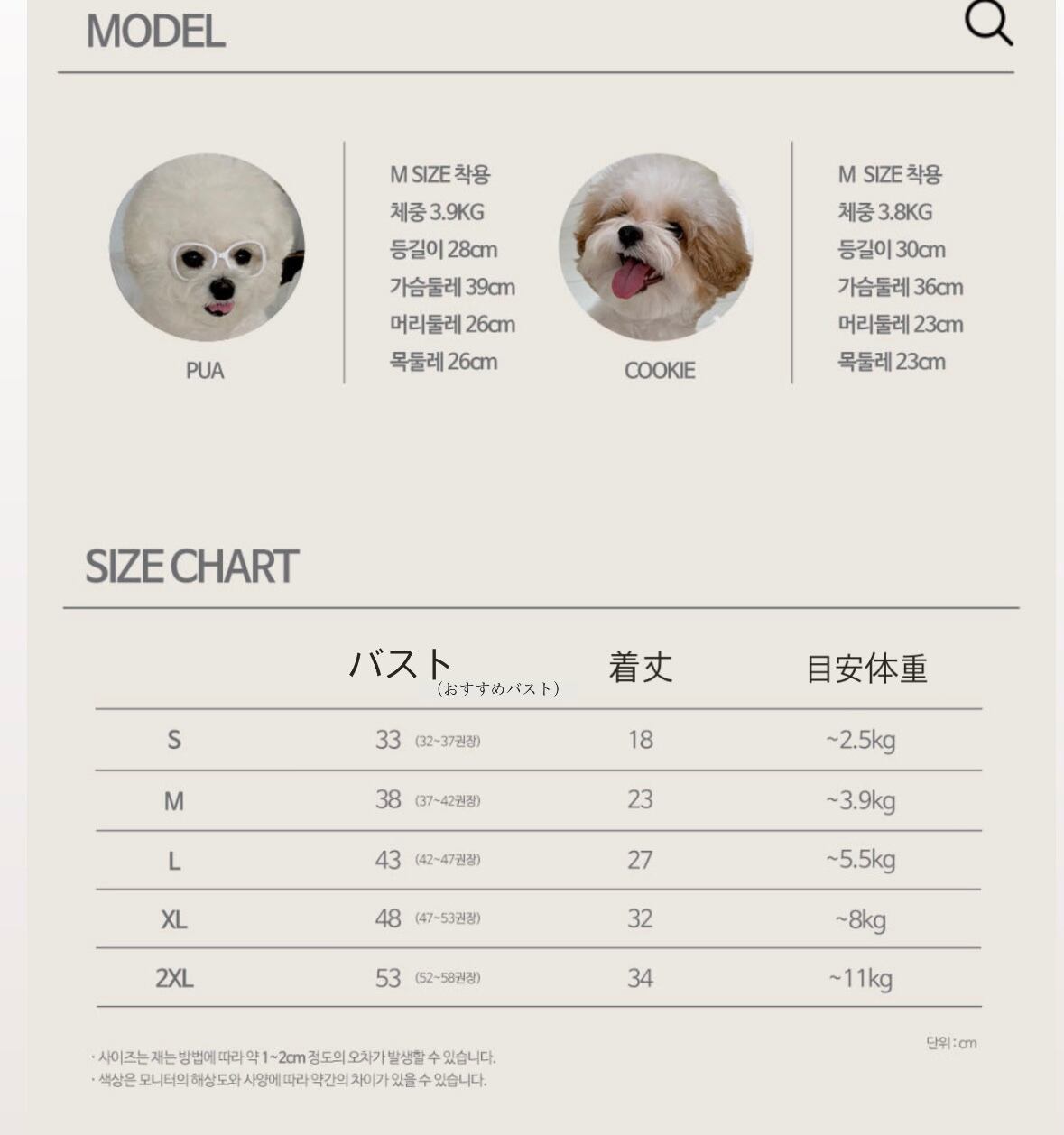 3.8kg/バスト36cm/背丈38cmMサイズ着用