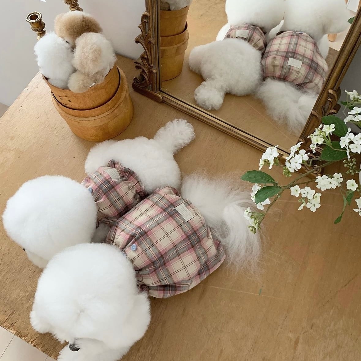 【near by us】brownie check rompers (Candy)